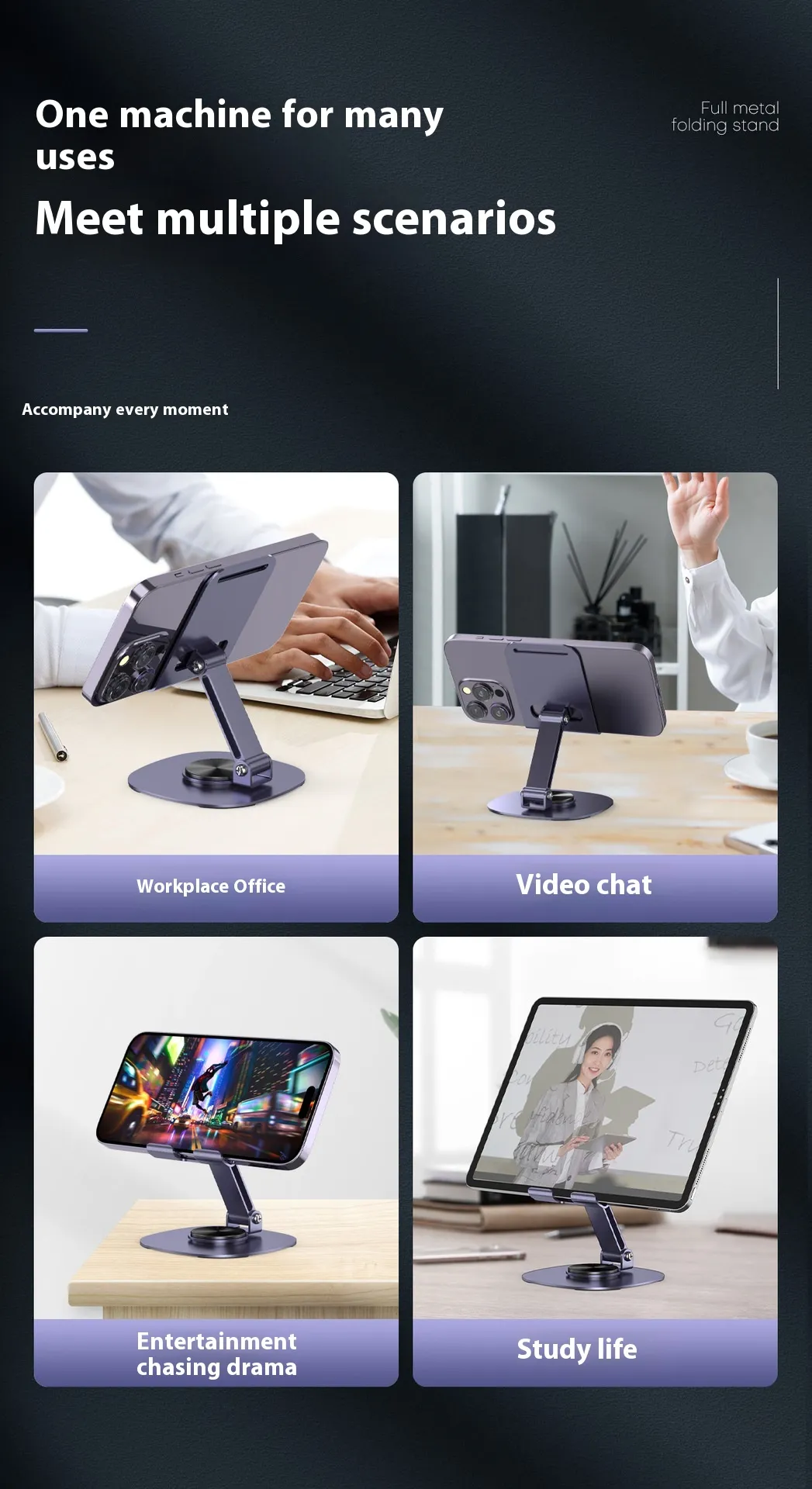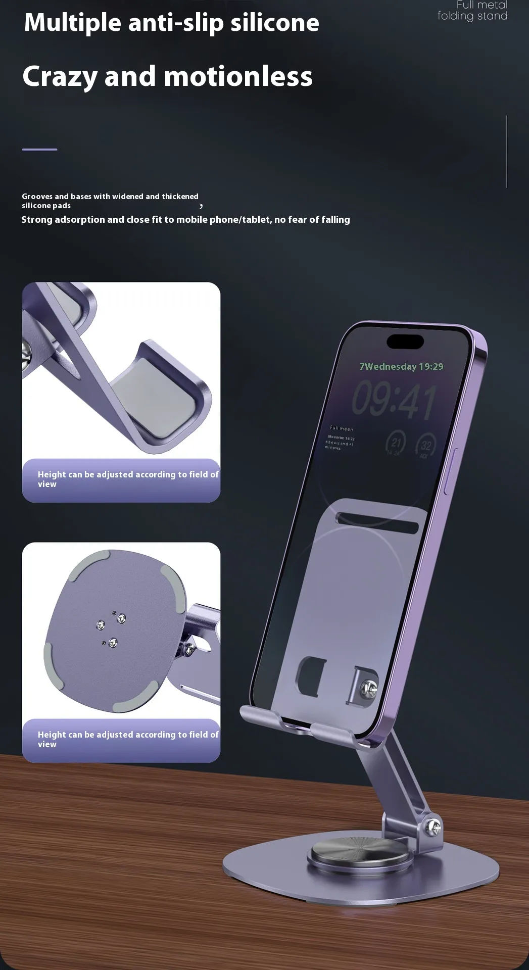 Whether you need a reliable stand for your desk, kitchen, or bedroom, the Metal Rotating Desktop Folding Mobile Phone Bracket offers functionality, portability, and style in one. It's a must-have for anyone looking to enhance their hands-free experience and makes a great gift for tech lovers and professionals alike.