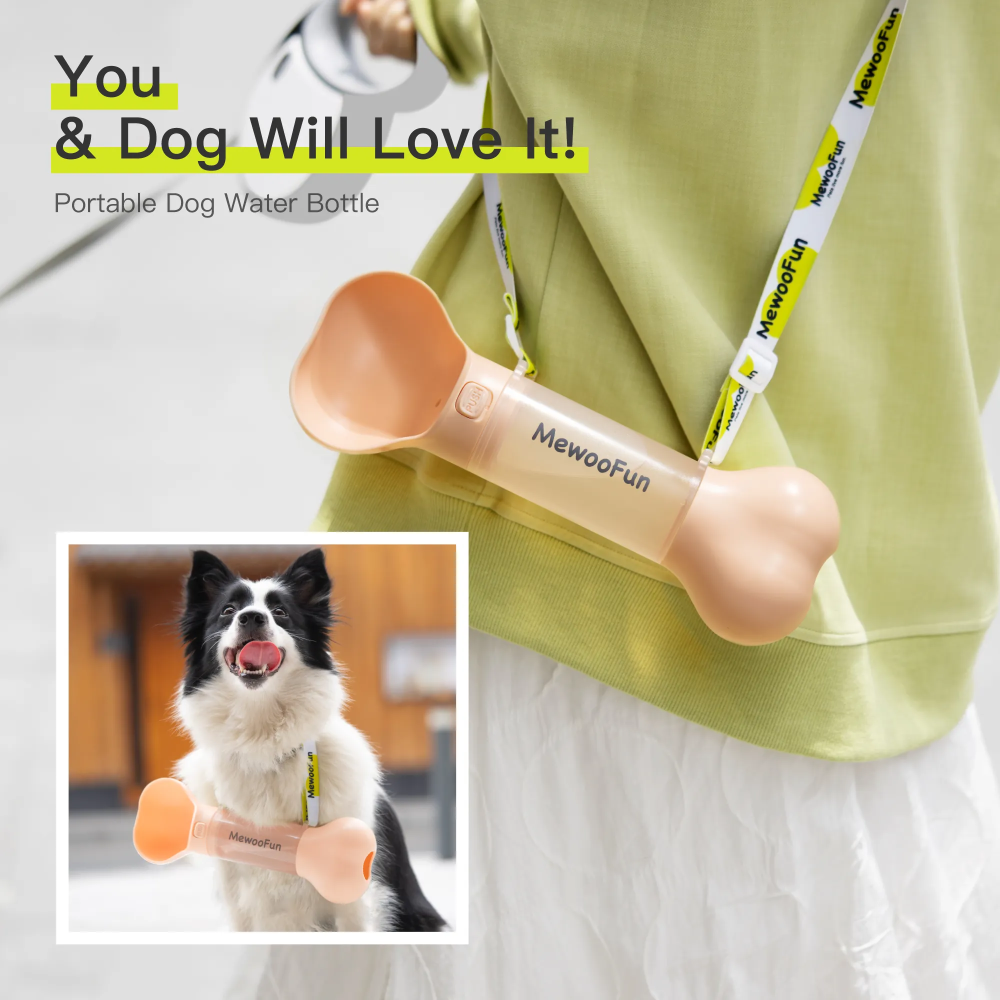【Dog Bone Shape Design】Our dog water bottle is similar to the "Bone" shape that dogs love.MewooFun dog water bottle for walking has a large