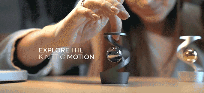 Place Luna on your desk or shelf and it will showcase itself as a beautiful sculpture. A kinetic design piece that can be brought to life with a simple twist. Keep focus, relieve stress, or simply play around anytime you like.