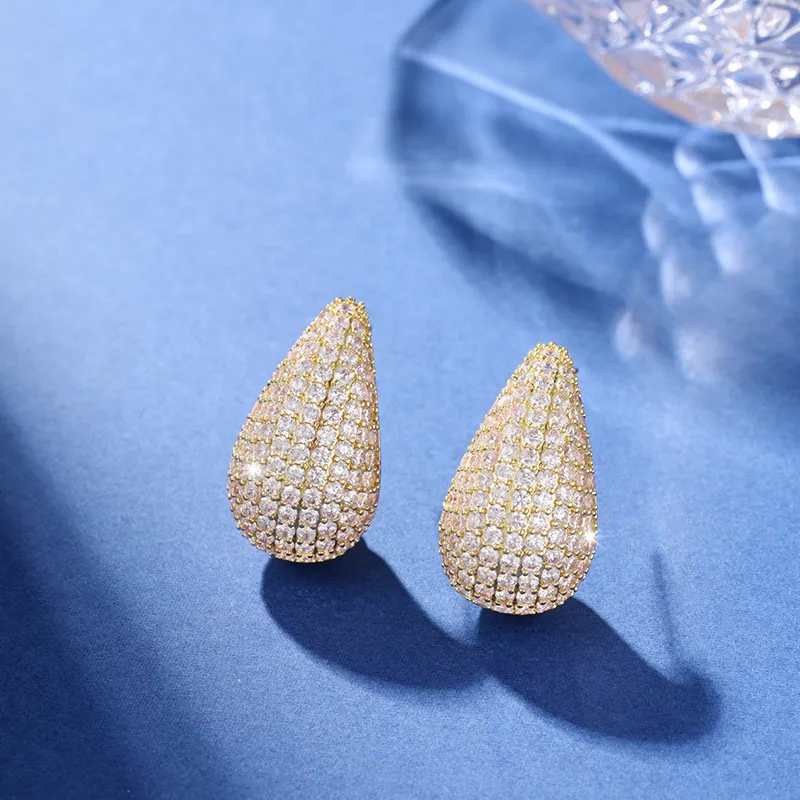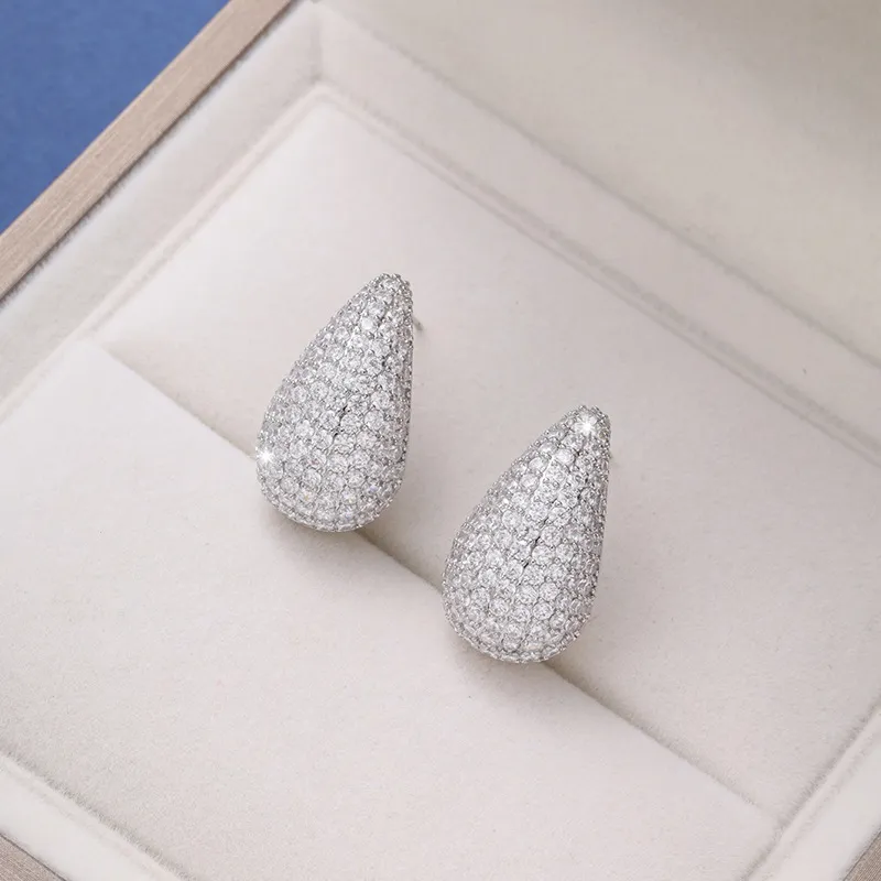 Micro-inlaid Diamond Super Shiny Water Drop Ear Studs Women's Light Luxury High-grade Earrings