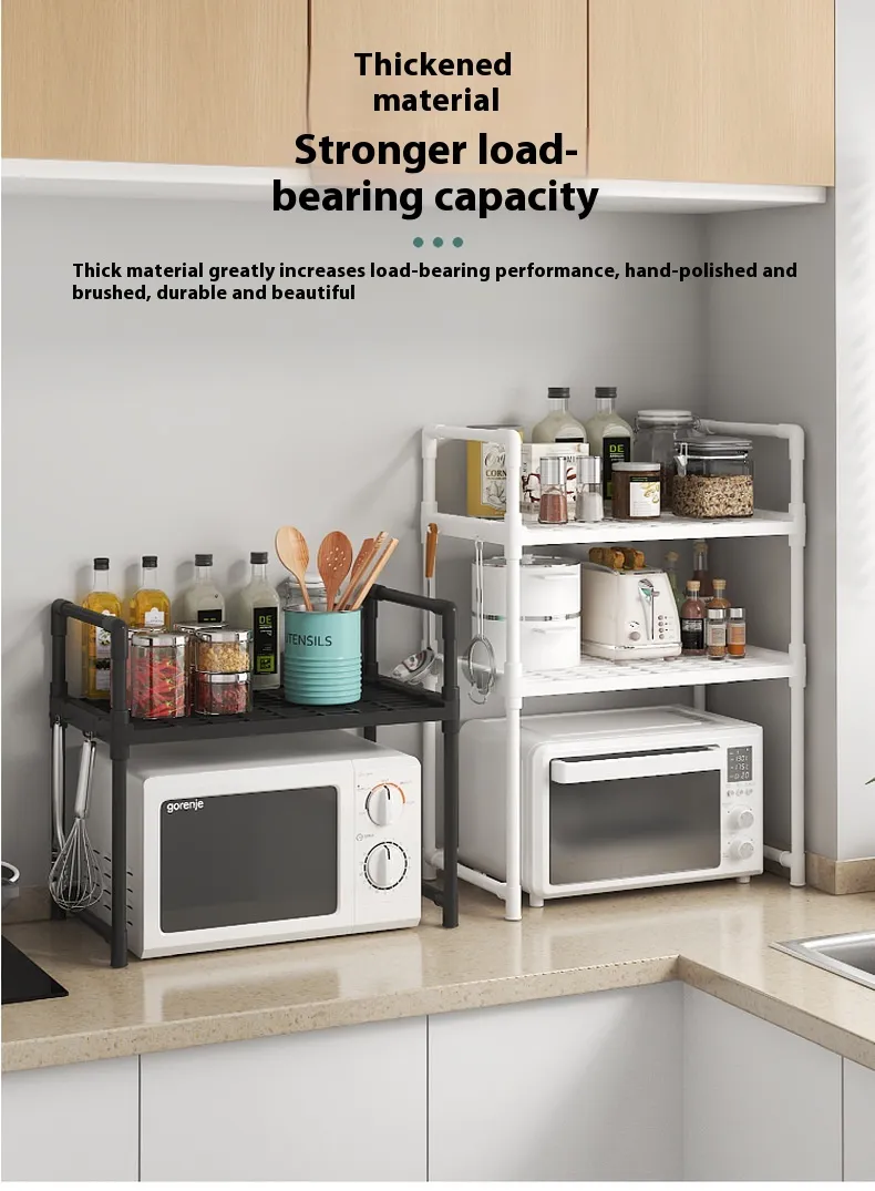 Space-Saving Design: The compact design of the microwave rack helps you save valuable counter space. It creates a vertical
