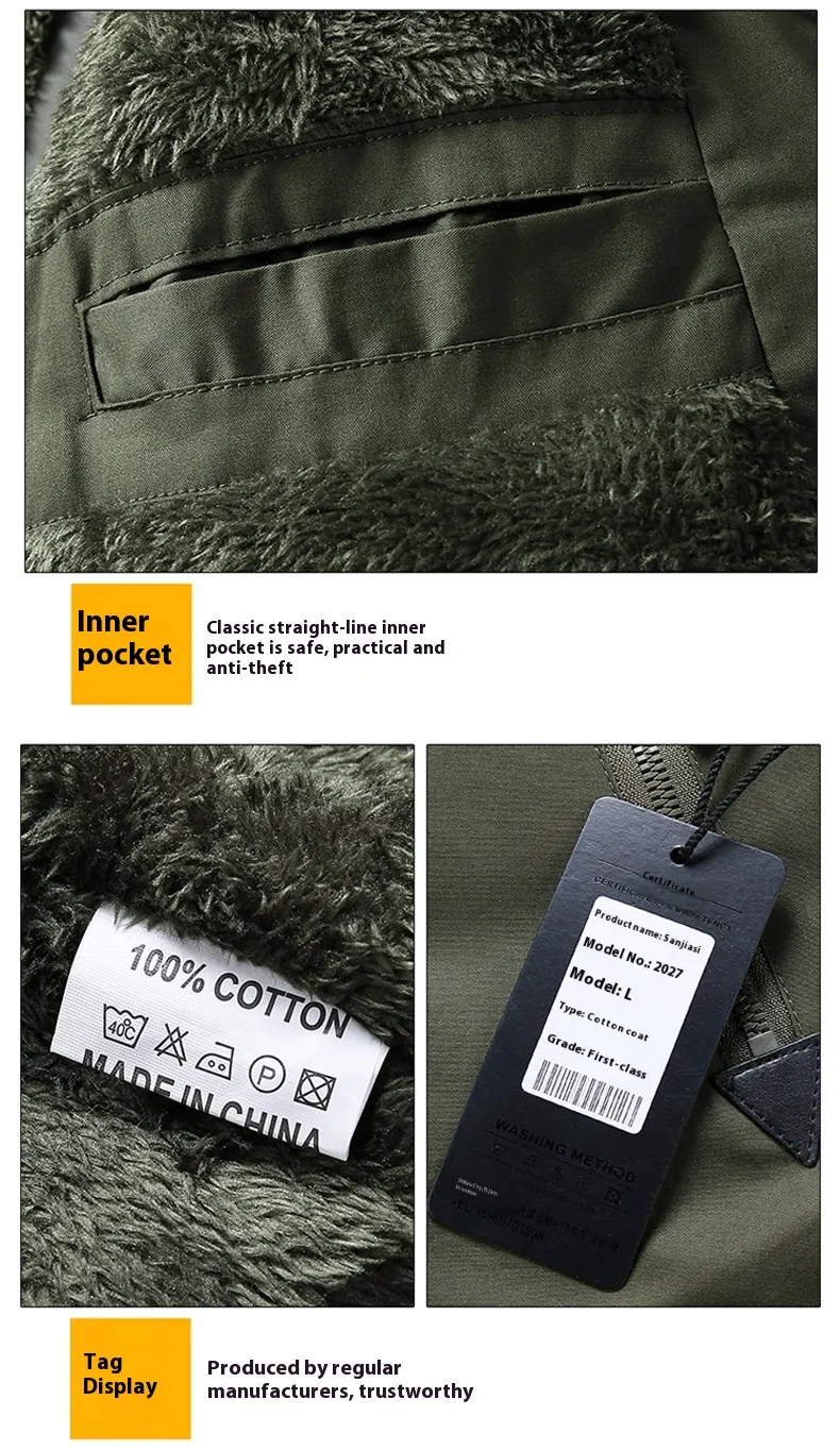 This jacket is the ultimate combination of warmth, comfort, and style. With its thermal velvet lining, thick cotton-padded insulation, and versatile mid-length design, it’s perfect for men who want to stay cozy and fashionable during autumn and winter.