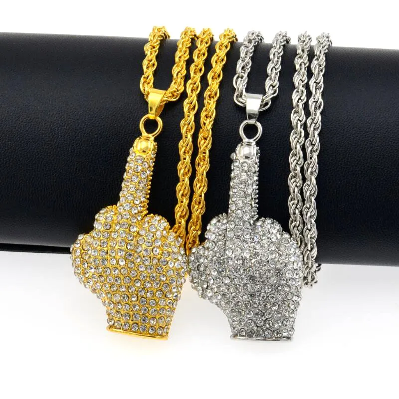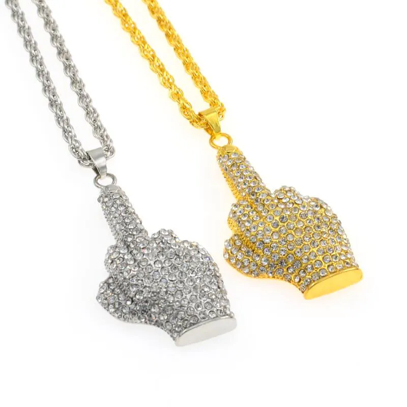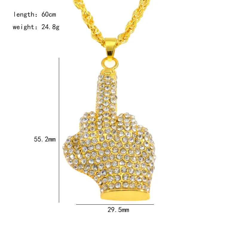 - Design: Middle finger gesture pendant with carefully set diamonds for a sparkling finish