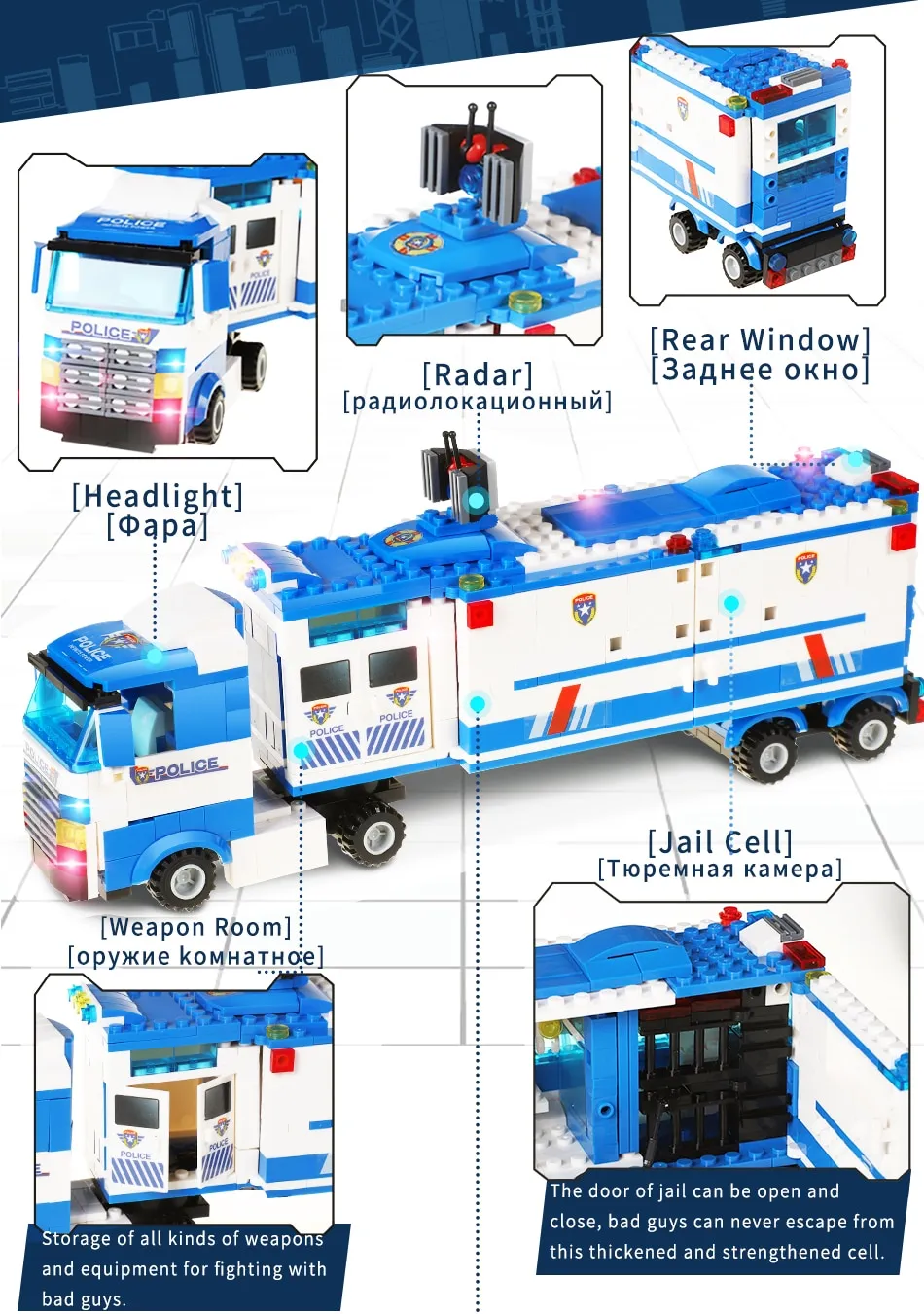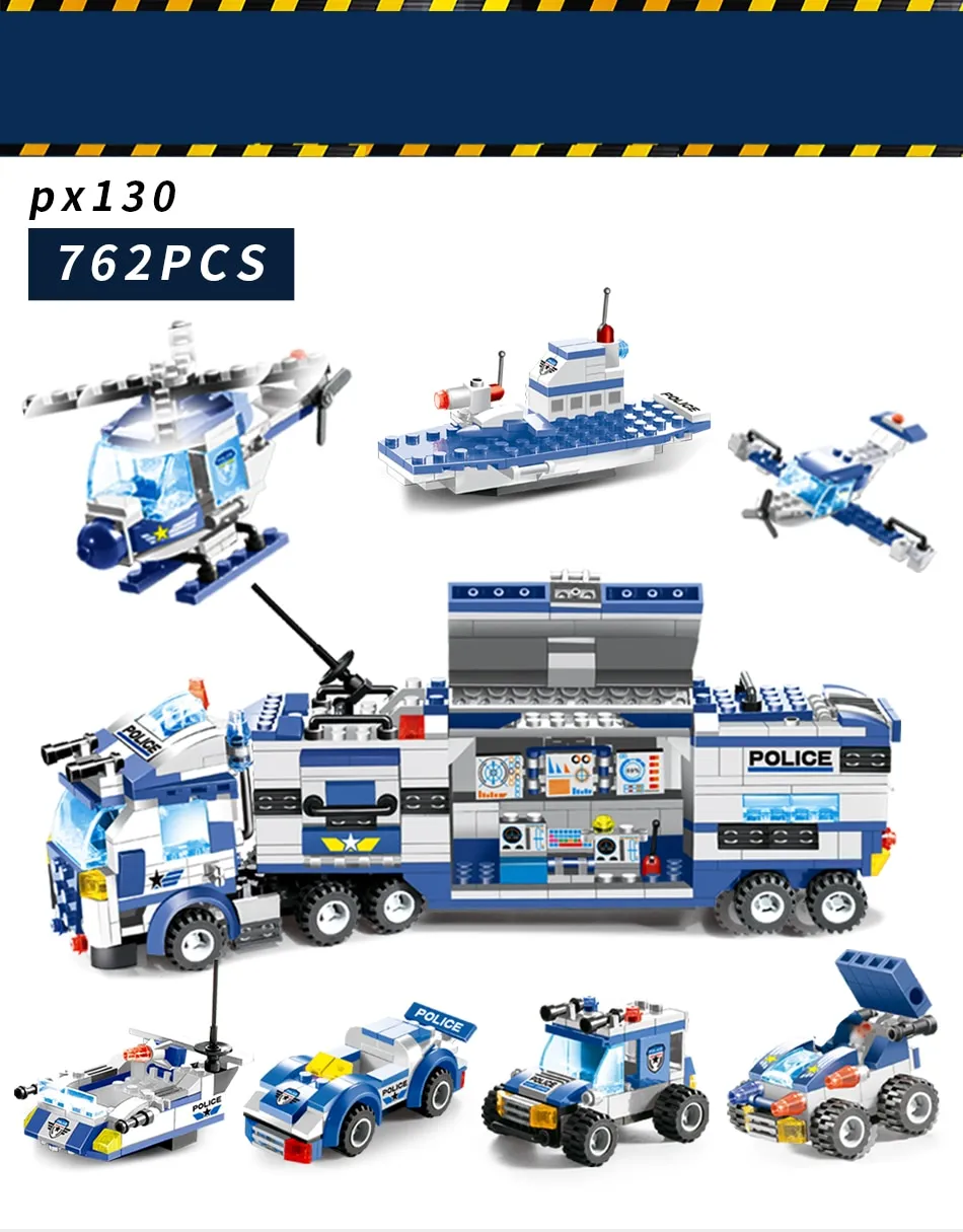 You must follow the instructions to put together 8 small vehicles and assemble them into a large truck.