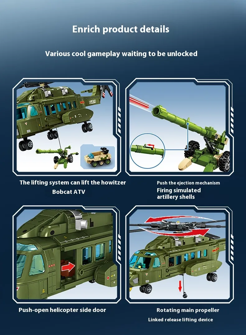 Military Straight 8L Multi-purpose Helicopter Assembly Model Boy Small Particles Assembled Building Block Toys
