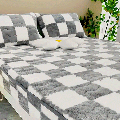 Milk Velvet Checkered Bedding Mattress Cover