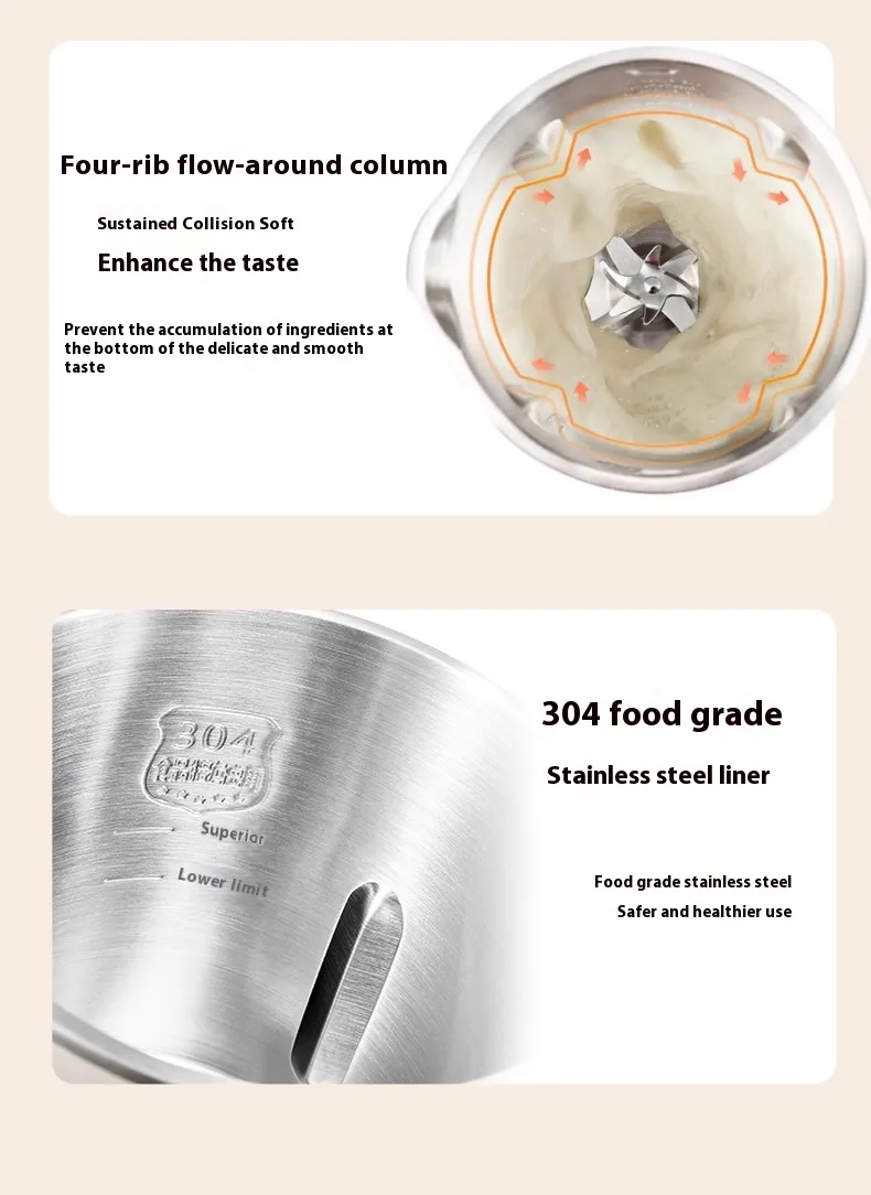- Advanced Grinding and Blending: Breaks down soybeans and other ingredients into fine particles, eliminating the need for filtering.