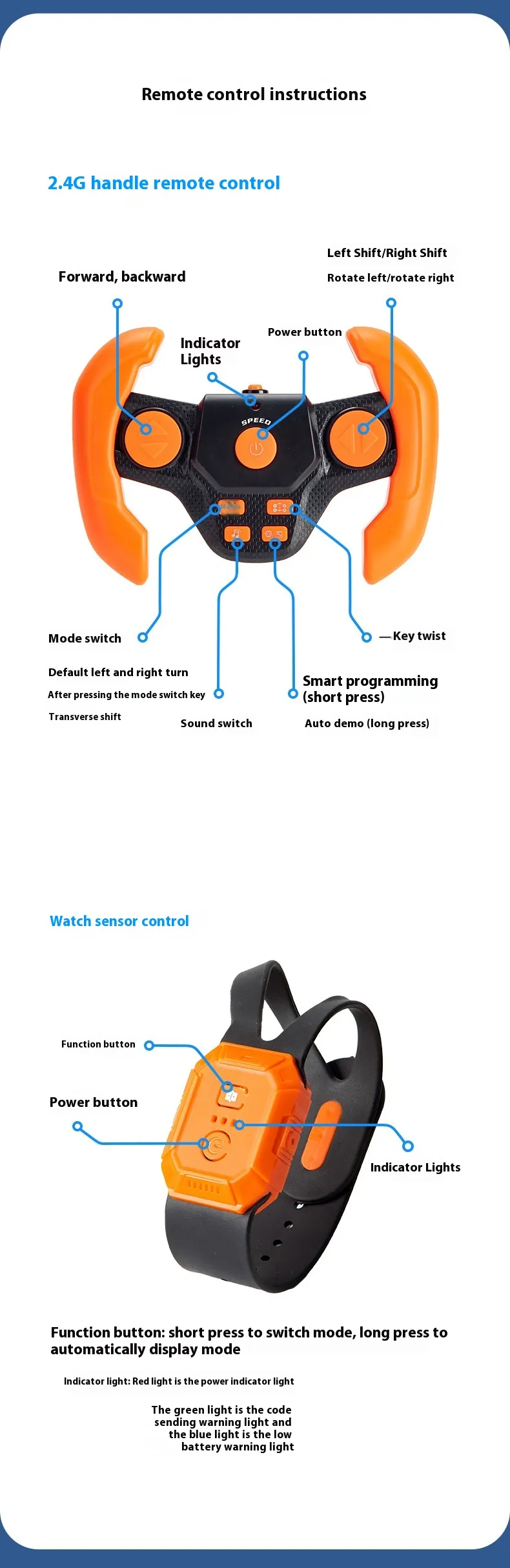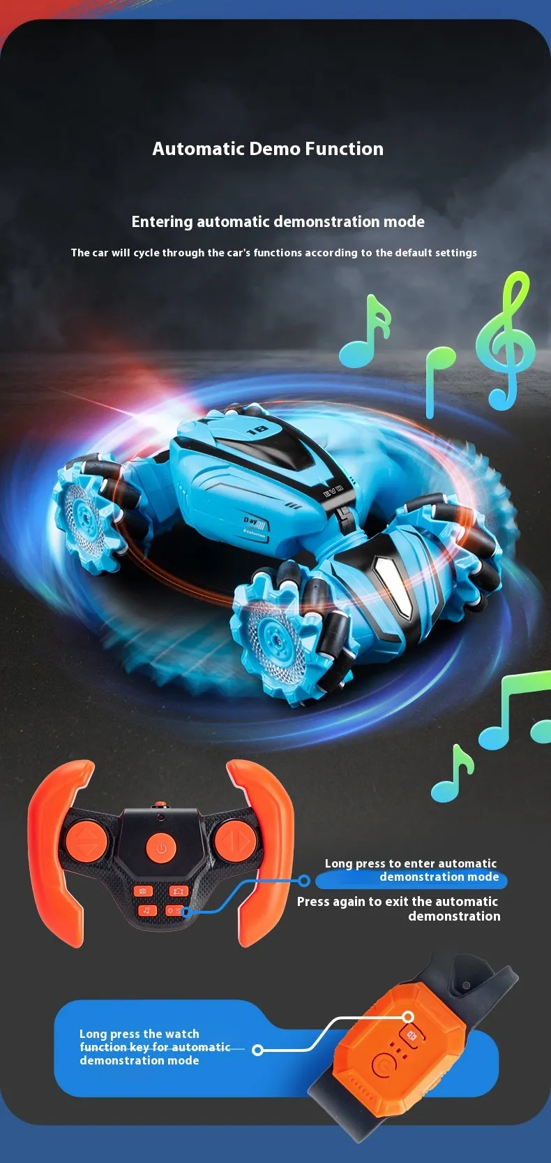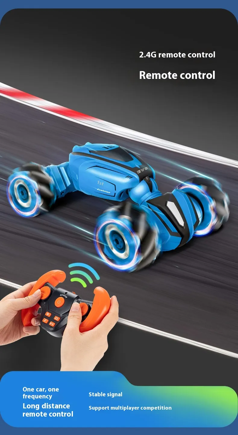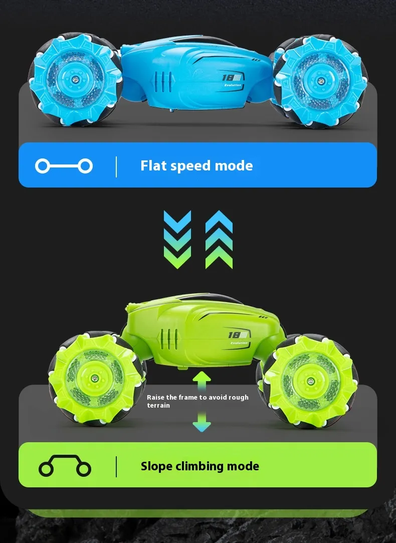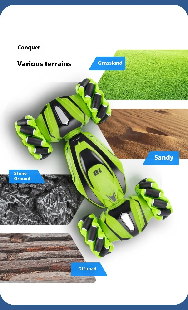 Equipped with advanced gesture-sensing technology, the car responds to simple hand motions, making it easy for kids to control its movements. The dual control modes allow kids to switch between remote and gesture control, providing a dynamic play experience that adapts to different styles and settings. With durable construction and powerful performance, this RC car is built to withstand fast-paced play, providing endless hours of excitement for kids.