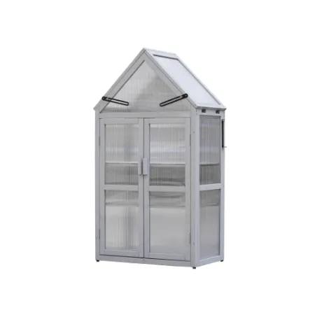 - Our Mini Greenhouse is stylish and would enhance the appearance of any garden, patio, balcony, terrace or even indoors. It is designed especially for those who have limited space to grow your own flowers, seedlings, tomatoes, vegetable or herbs and spices. Made from a naturally durable and impervious cedar species, and stained with a french gray UV-resistant paint.