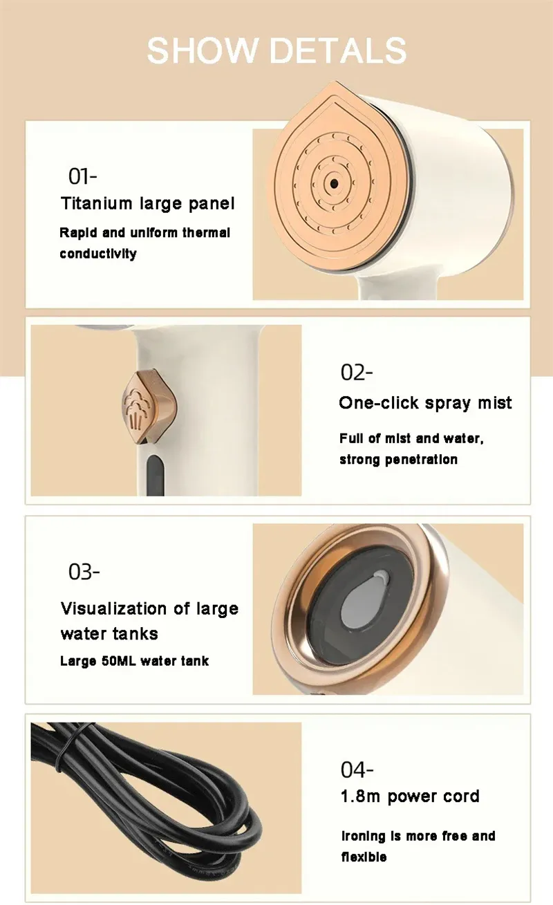 The Mini Portable Handheld Garment Steamer is designed for convenience. Its lightweight and compact design make it easy to store in a closet, suitcase, or even your handbag. Perfect for travelers and those with limited storage space, this steamer can go wherever you do, ensuring you’re always ready to tackle wrinkles on the fly.