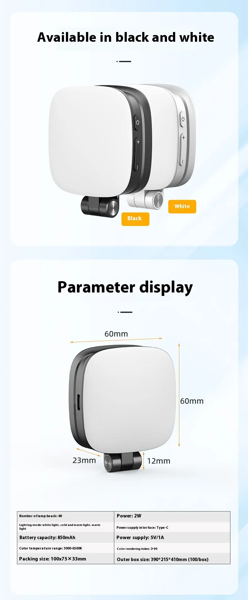 Fill light * 1 Charging cable * 1