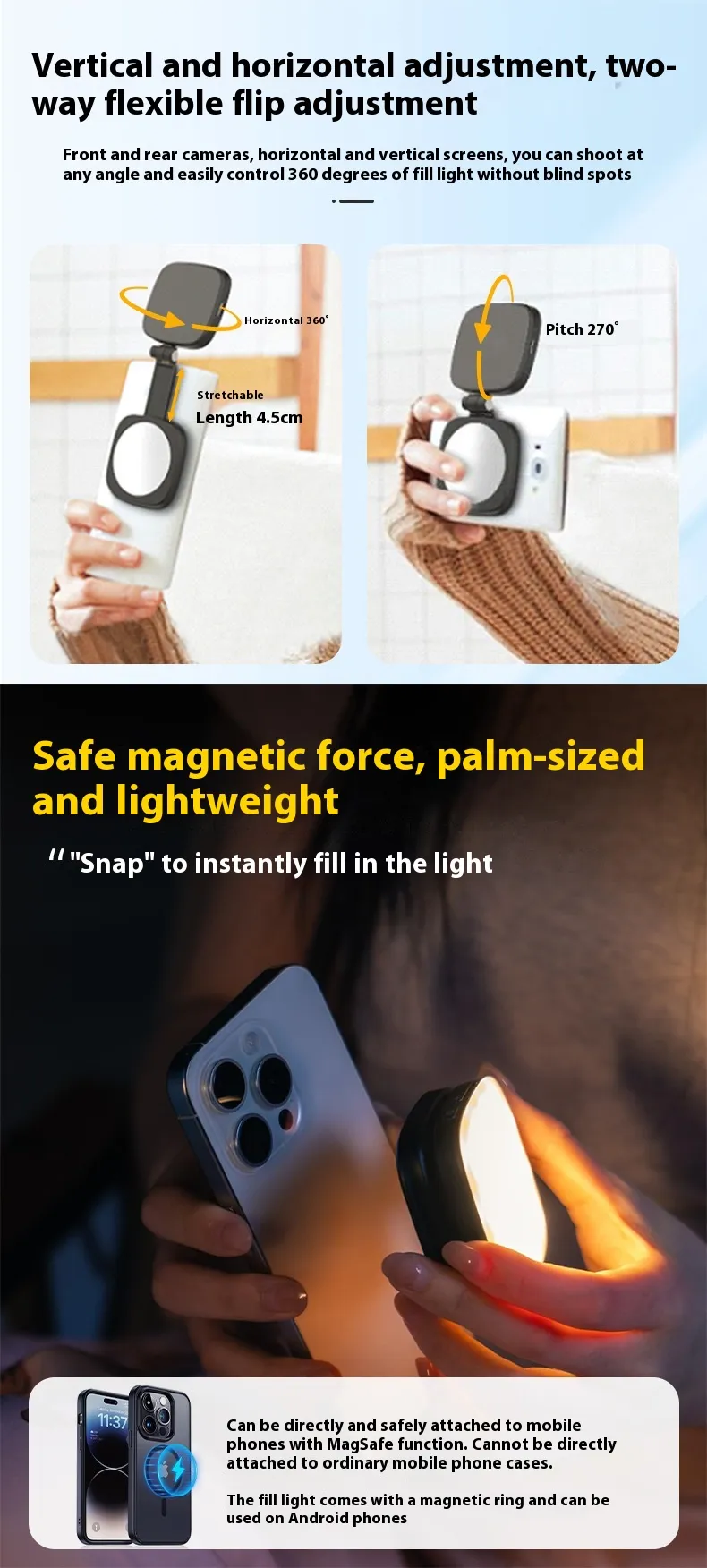 Designed with versatility in mind, the Mini Selfie Fill Light features adjustable brightness settings, allowing you to customize the light to suit your environment. Whether you're shooting indoors, outdoors, or at night, the fill light ensures even, natural-looking illumination, eliminating harsh shadows and providing a professional touch to your photos. Ideal for use with smartphones, tablets, or cameras, this mini light is an essential tool for content creators, influencers, or anyone looking to improve their photography on the go.