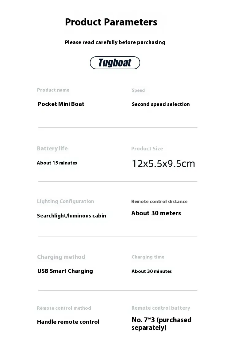 Features: 2.4g remote control, low-power alarm, mini Hull