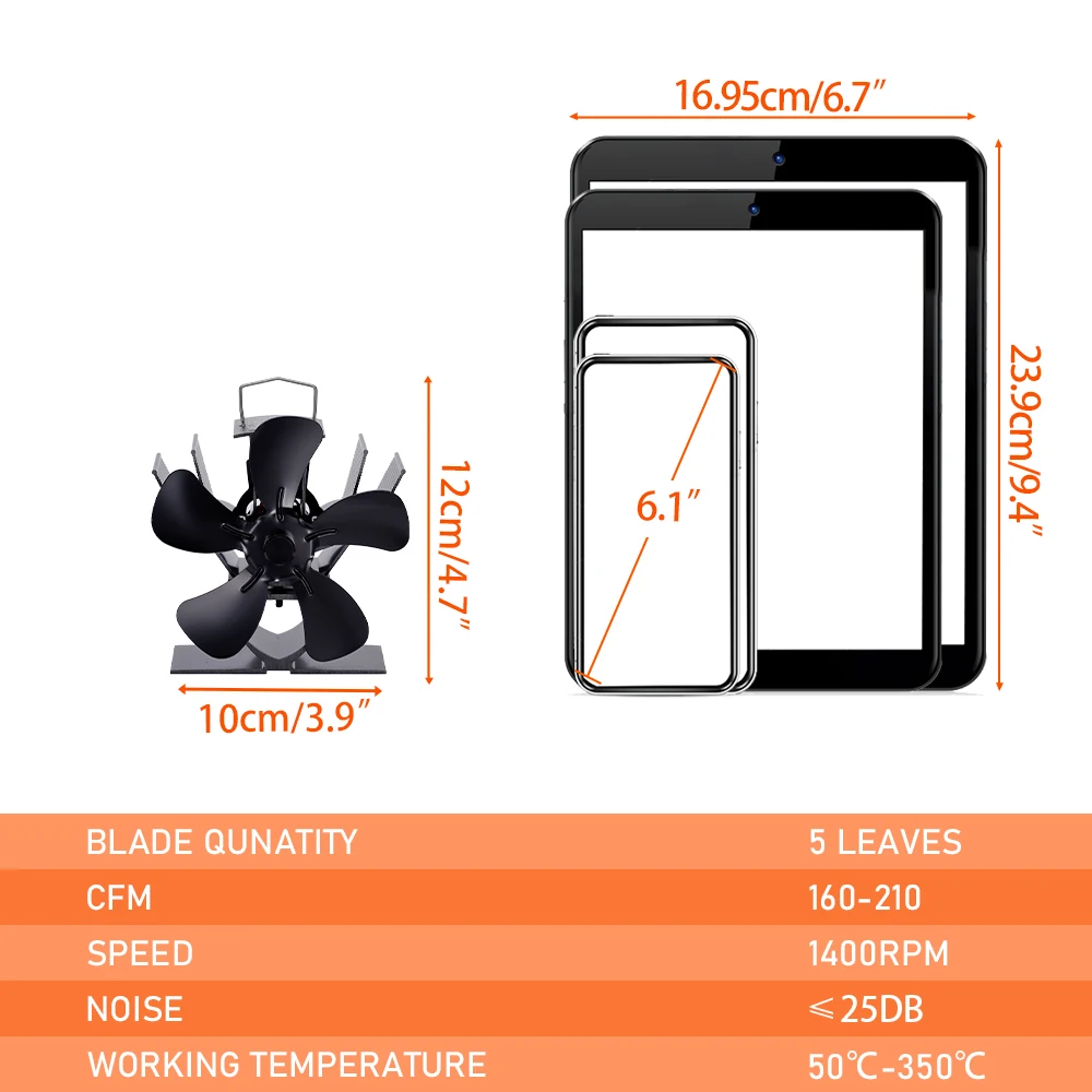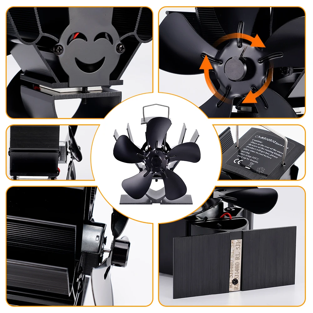 Mini Stove Fan - Heat-Powered 5-Blade Eco-Fan for Fireplace and Log Wood Burners