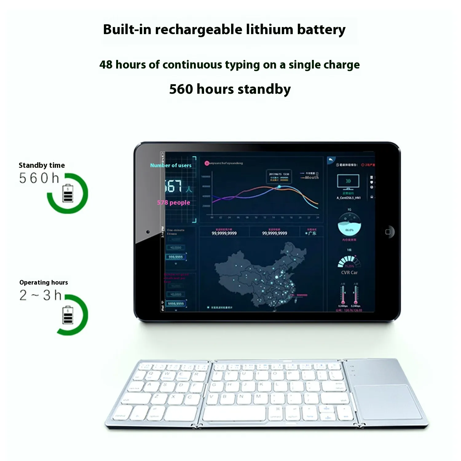 Mini Tri-fold Bluetooth Keyboard – Portable, Thin, and Touch-Sensitive for On-the-Go Typing
