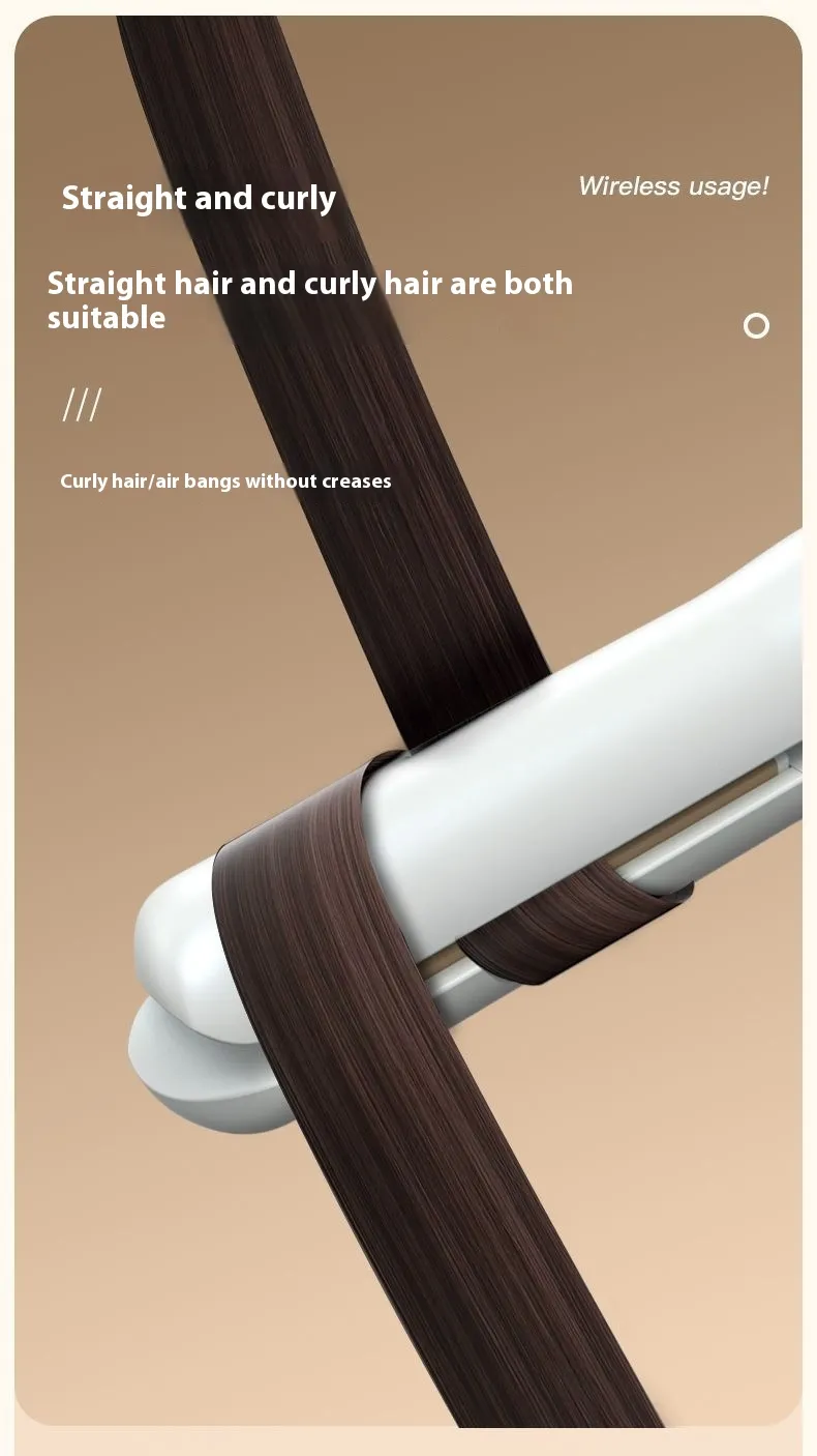 The Mini Wireless Rechargeable Splint Hair Straightener and Curler is suitable for all hair types, including dry and slightly damp hair. Its 3D floating panel adapts to different hair volumes, ensuring smooth styling without pulling or tugging. Whether you're preparing for a big event or just need a quick touch-up, this tool provides salon-quality results in a compact form.To prolong the life of your hair straightener and curler, ensure it is fully charged before use and avoid exposure to water. Store it in a cool, dry place when not in use, and clean the ceramic plates with a soft, damp cloth to maintain their effectiveness.