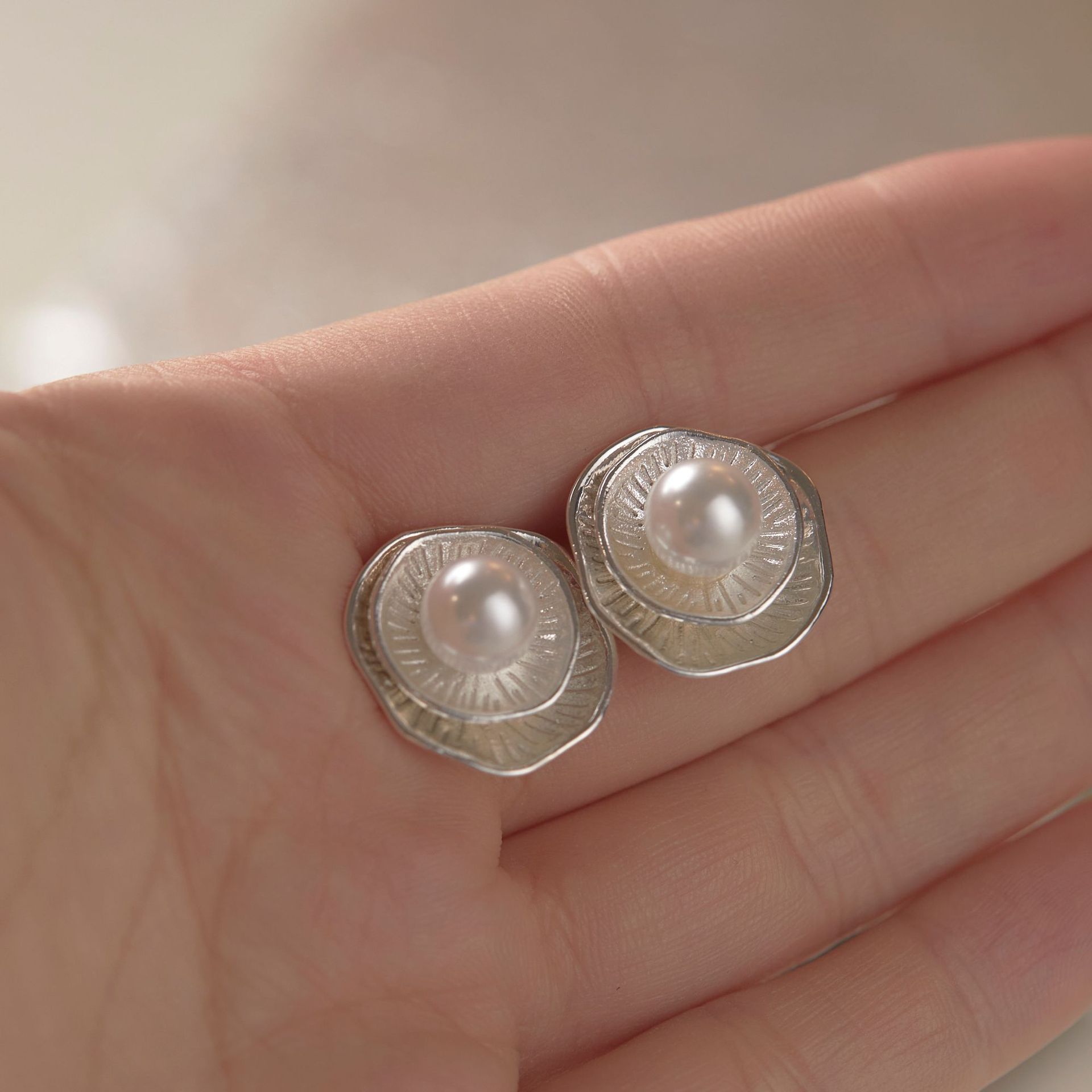 Whether you're looking for the perfect accessory for a special occasion or a timeless piece for everyday wear, the Minimalist Frosted Silver Pearl Stud Earrings are an ideal choice. They make a thoughtful gift for loved ones or a delightful treat for yourself.