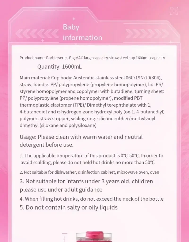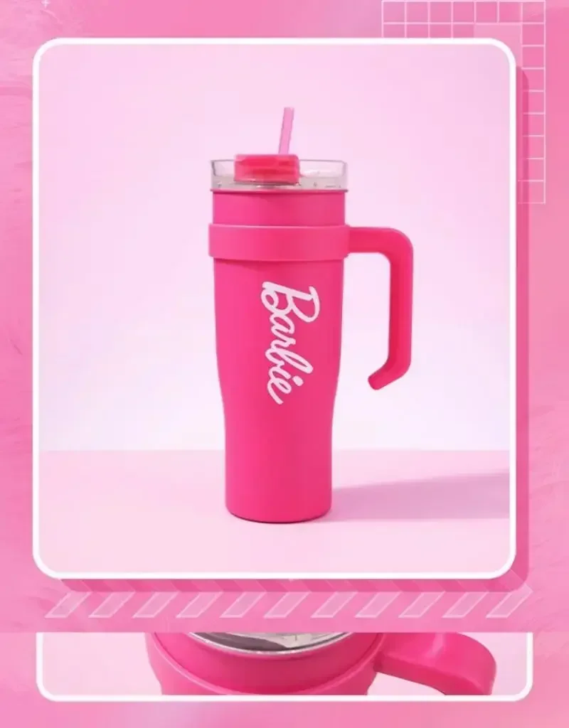 MINISO Barbie Co-Branded 1600ML Large-Capacity Stainless Steel Water Cup Thermal Insulation, Pink, Girls Water Bottle
