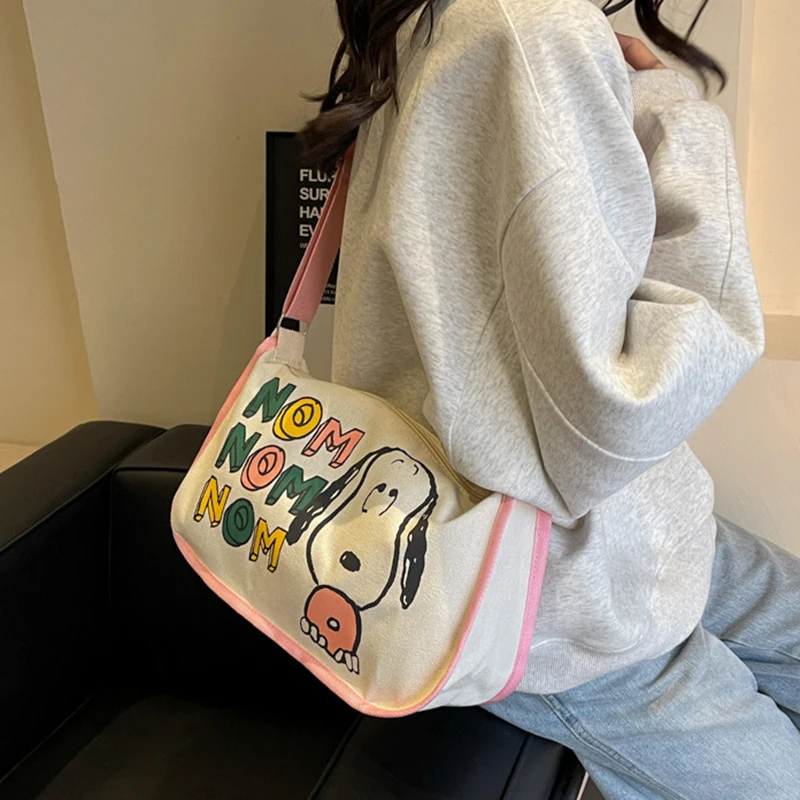 MINISO Snoopy Cartoon Cute Print Canvas Bag Large Capacity One Shoulder Dumpling Bag, Women's Crossbody Bag