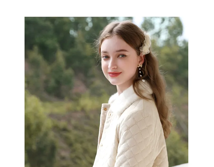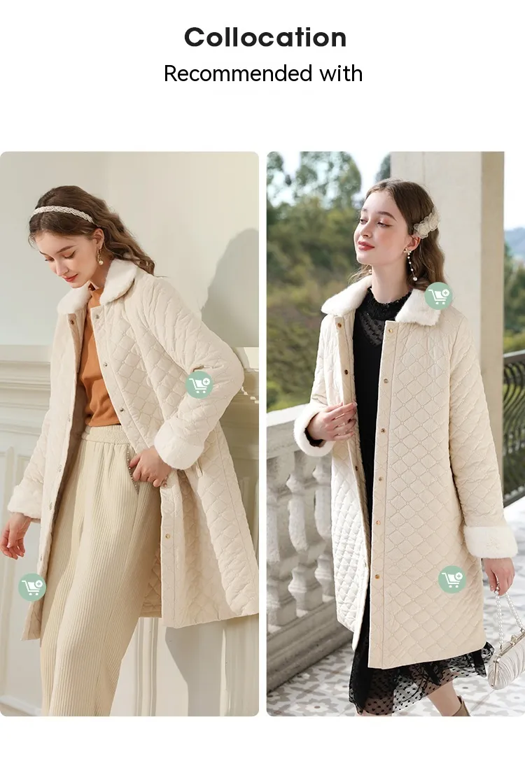 Mink-like Collar Rhombus Cotton-padded Coat Women's Winter Cotton Padded Coat