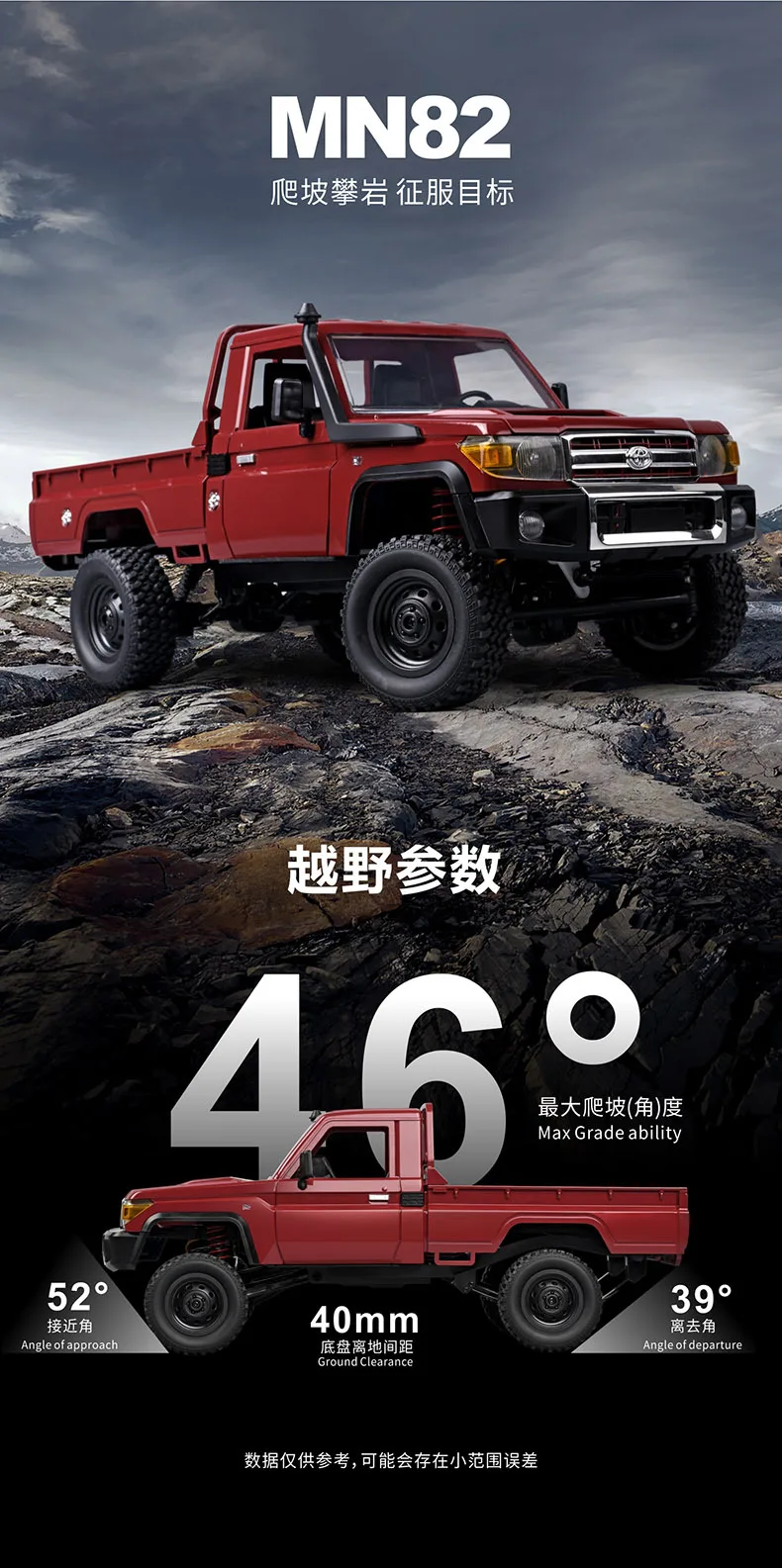 Built with durable materials, the MN82 RC car is designed to withstand rough play and off-road environments. It’s made to endure frequent use, providing years of fun and excitement.