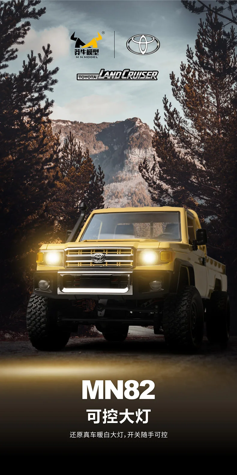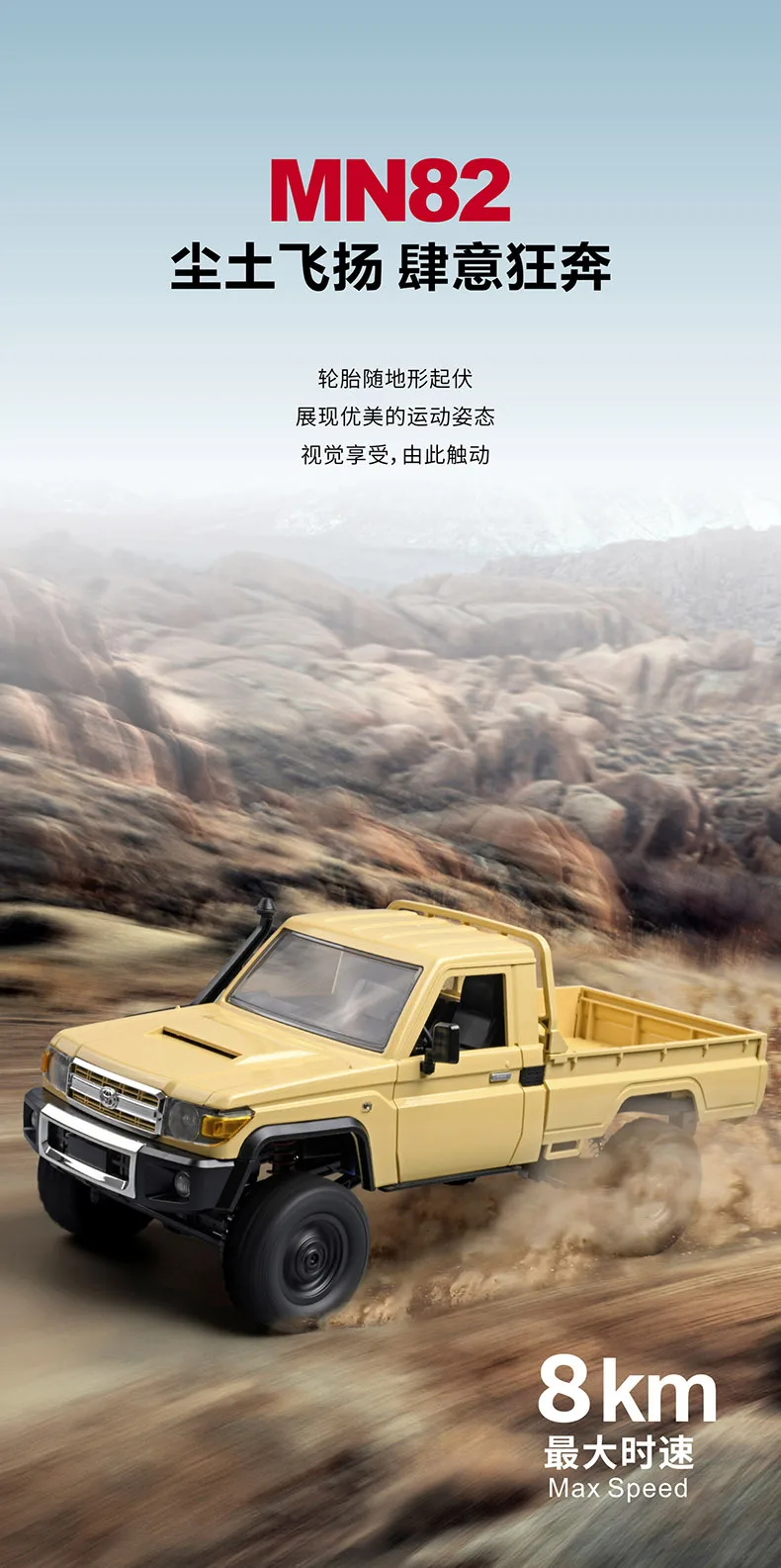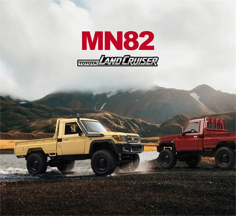 The 1:12 scale size of the MN82 RC truck provides a perfect balance between performance and realistic details. The LC79 Pickup Truck model is intricately designed, featuring a realistic body, functional suspension, and durable off-road tires, making it ideal for collectors and hobbyists alike.