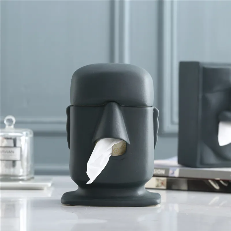 Add a touch of modern art to your space with our Moai Statue Ceramic Drawer Tissue Holder. Inspired by the iconic Moai statues of Easter Island, this tissue holder combines functionality with a bold, artistic design, making it a statement piece for any room. Crafted from high-quality ceramic, this tissue dispenser features a hidden drawer for easy refills, allowing you to store and dispense tissues with ease and style. Perfect for living rooms, bedrooms, offices, or bathrooms, this Moai statue tissue holder brings an artistic vibe and a touch of humor to your decor.