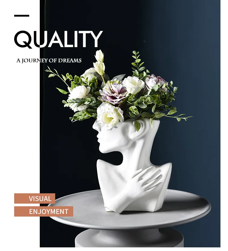 Modern Nordic Style Creative Portrait Vase: Human Head Flower Vase