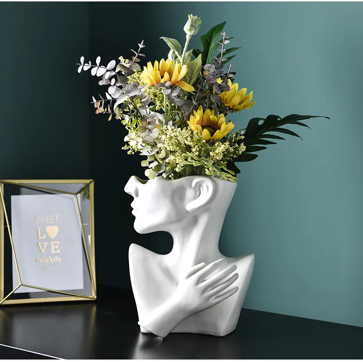 Modern Nordic Style Creative Portrait Vase Human Head Flower Vases Decorative Ornaments Resin Home Flowers Art Decor
