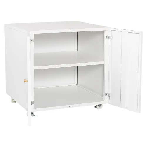 Metal printer stand with storage Small space mobile printer table With door Adjustable shelf Home Office Filing Cabinet on Wheels (White)