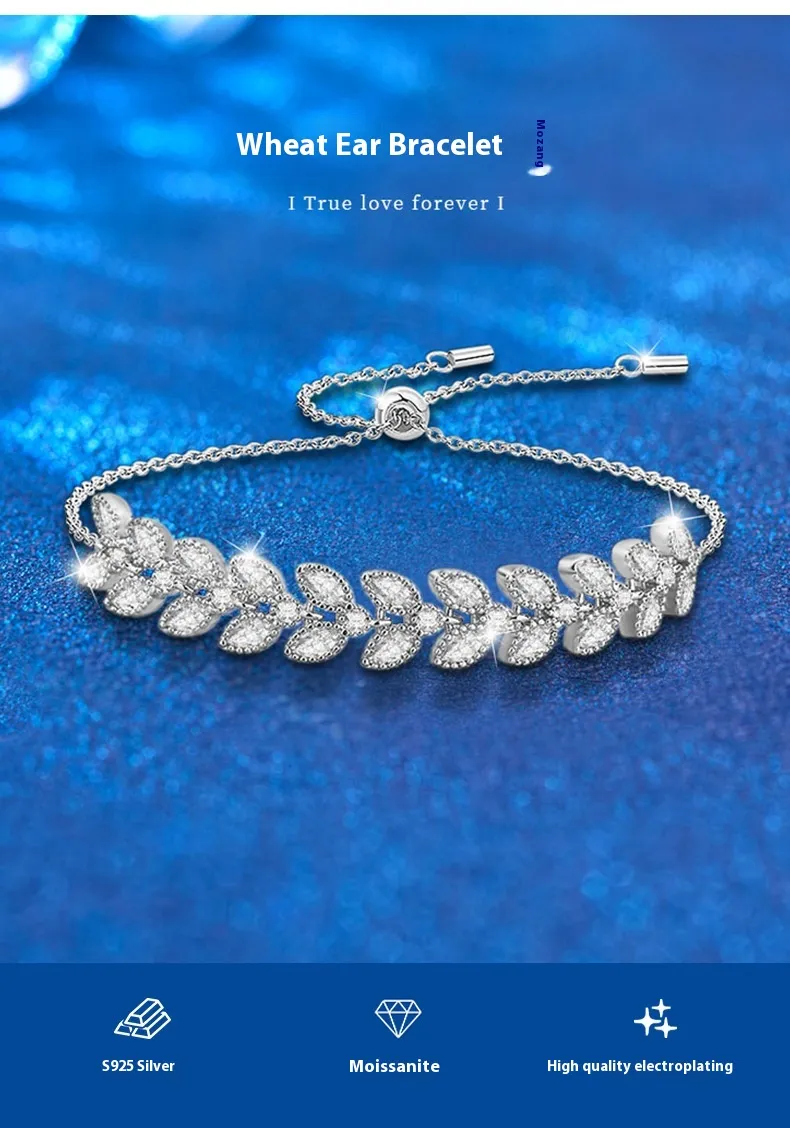 The Moissanite Adjustable 925 Sterling Silver Wheat Bracelet is an exquisite piece of jewelry designed to elevate your style with its blend of luxurious Moissanite gemstones and the timeless beauty of 925 sterling silver. Whether you are treating yourself or gifting a loved one, this bracelet combines durability with sparkle, making it a must-have addition to any jewelry collection. Inspired by the beauty of nature and crafted with precision, this bracelet brings a fresh, modern twist to classic elegance.