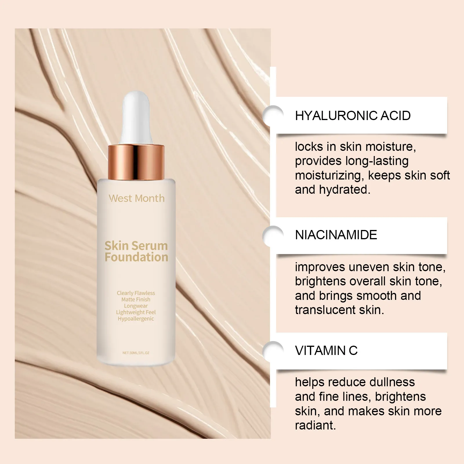 Ingredients: Hyaluronic Acid, nicotinamide, vitamin C, shea butter, titanium dioxide