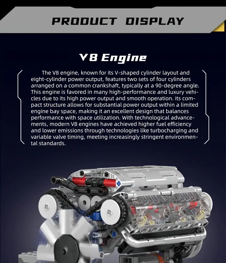 Mold King V-8 Engine Construction Blocks V8 Motor Model Toy V8 Engine Building Set Creative STEM Toy Engine Kit Ideal for Adults