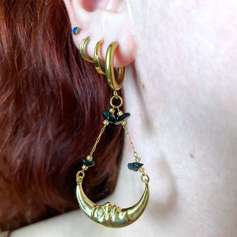 Moon Earrings Pendant Agate Stone Chain