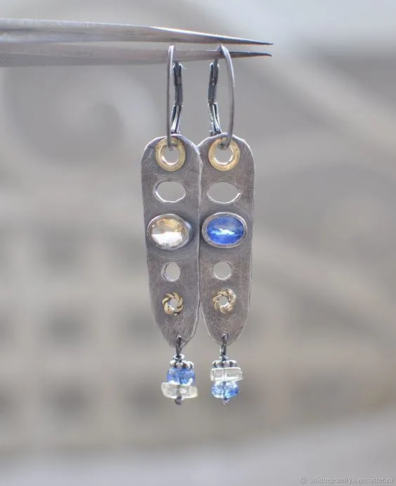 Moonstone Two-tone Long Bar Earrings
