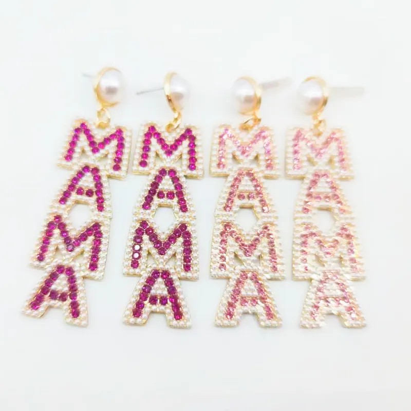 Mother's Day Creative Letters Alloy Ornament Pearl Earrings