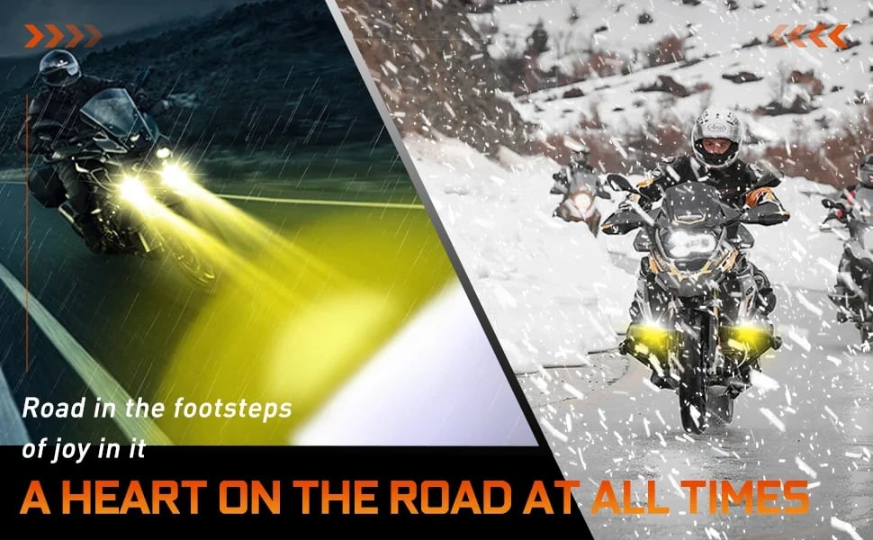 - Yellow Fog lights produce a 60° wide area coverage of light directly in close-range front of the motorcycle in low-visibility conditions, like foggy/rainy days.