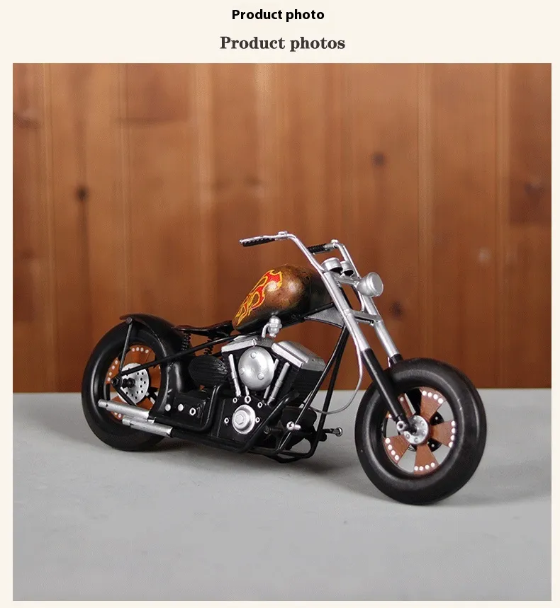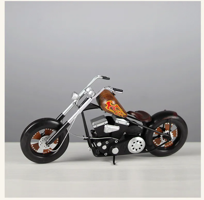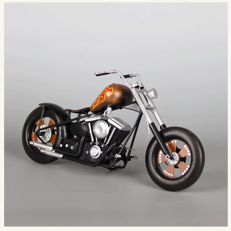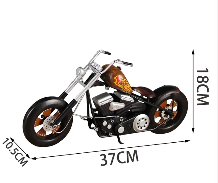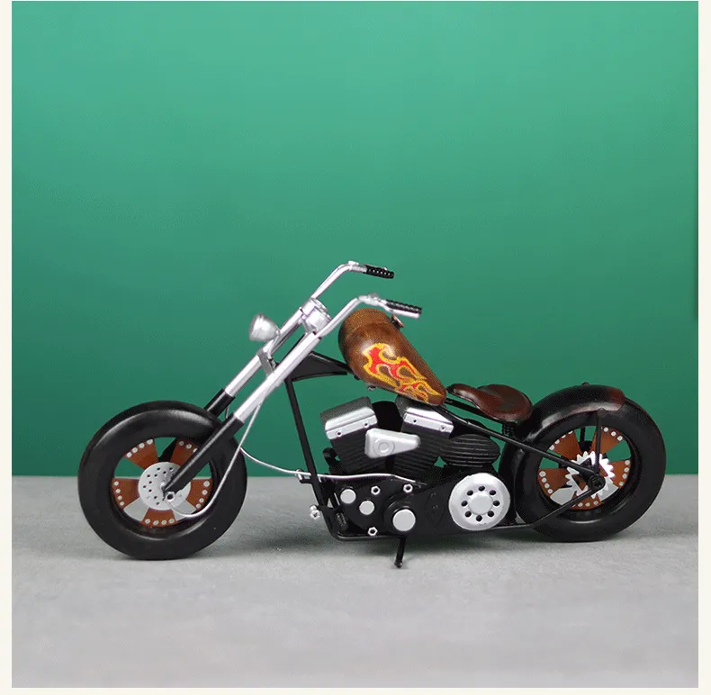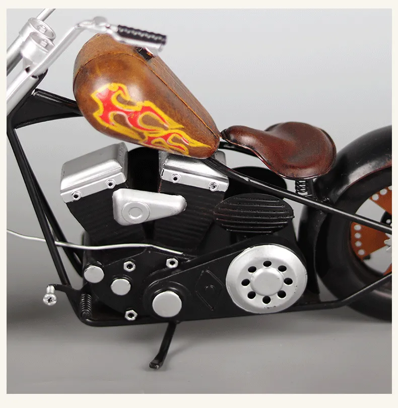 This metal motorcycle model is crafted with incredible attention to detail, from the wheels and handlebars to the engine and exhaust pipes. Every component is thoughtfully designed to mimic the features of classic motorcycles, giving the model a realistic look that vintage enthusiasts will love. The handmade metalwork adds a level of artistry that makes this model a true piece of craftsmanship.