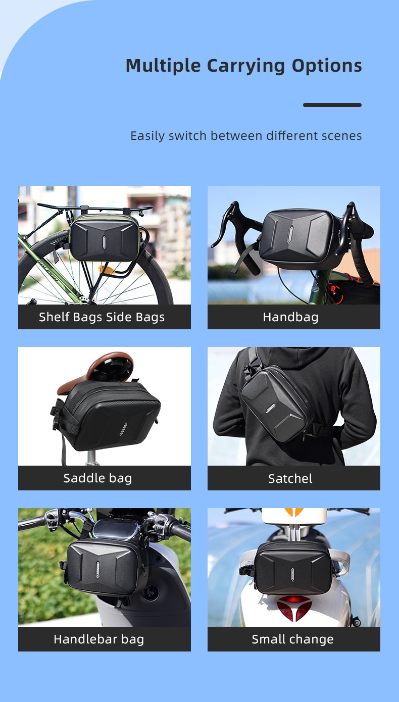 Installation is quick and hassle-free, thanks to the intuitive mounting system that securely attaches the bag to your bike's front frame. Once in place, the bag remains firmly fixed, providing a stable and reliable storage solution that won't impede your riding experience.