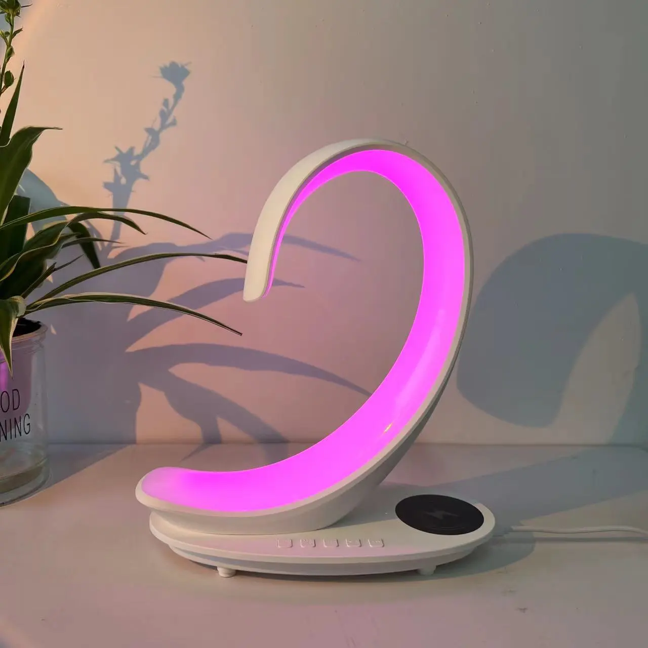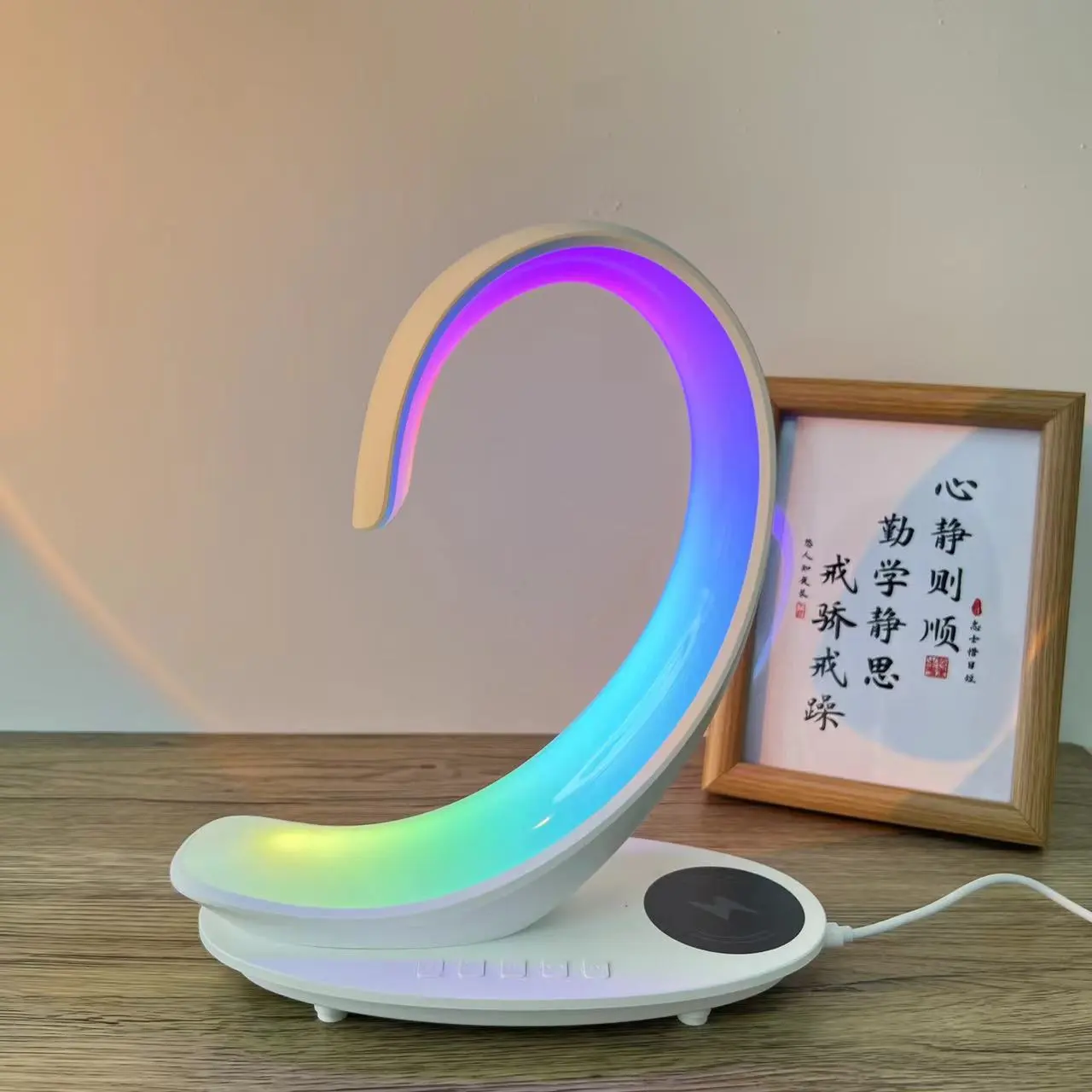 Multi-functional Desktop Wireless Charger Bluetooth Speaker Atmosphere Colorful Light White Swan Light