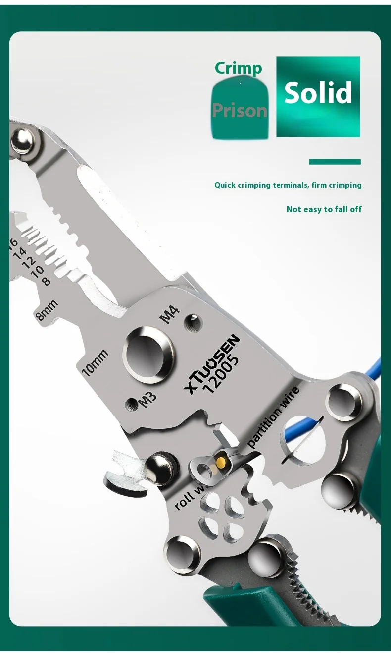 Crafted for precision and durability, the multi-functional pliers are designed to handle a wide range of tasks, making them ideal for electricians and DIY enthusiasts alike. Whether you’re cutting wires, stripping, splitting, or pressing them into place, this tool will save you time and effort, all while ensuring professional results.