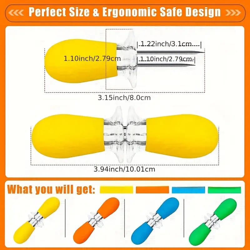 🌽Easily and comfortably hold corn without burning your hands. These holders can slot together for safe storage.✨