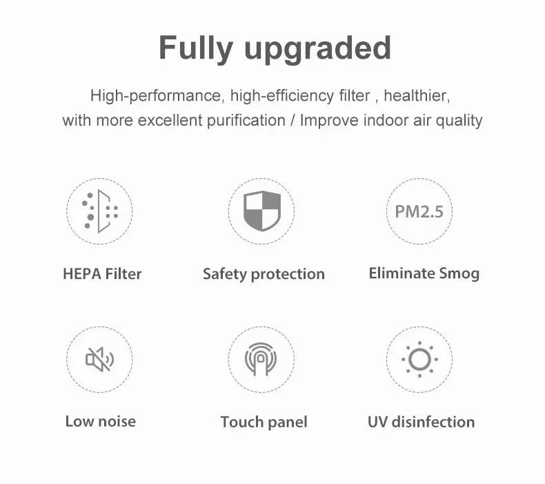 - H13 HEPA Filter: Captures 99.97% of airborne particles including dust, pollen, pet dander, smoke, and mold.