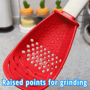 The Multifunctional Kitchen Cooking Spoon can be used for cooking, draining, mashing, and grating garlic. It can be used for mashing potatoes or beans. It also functions as an eggbeater.