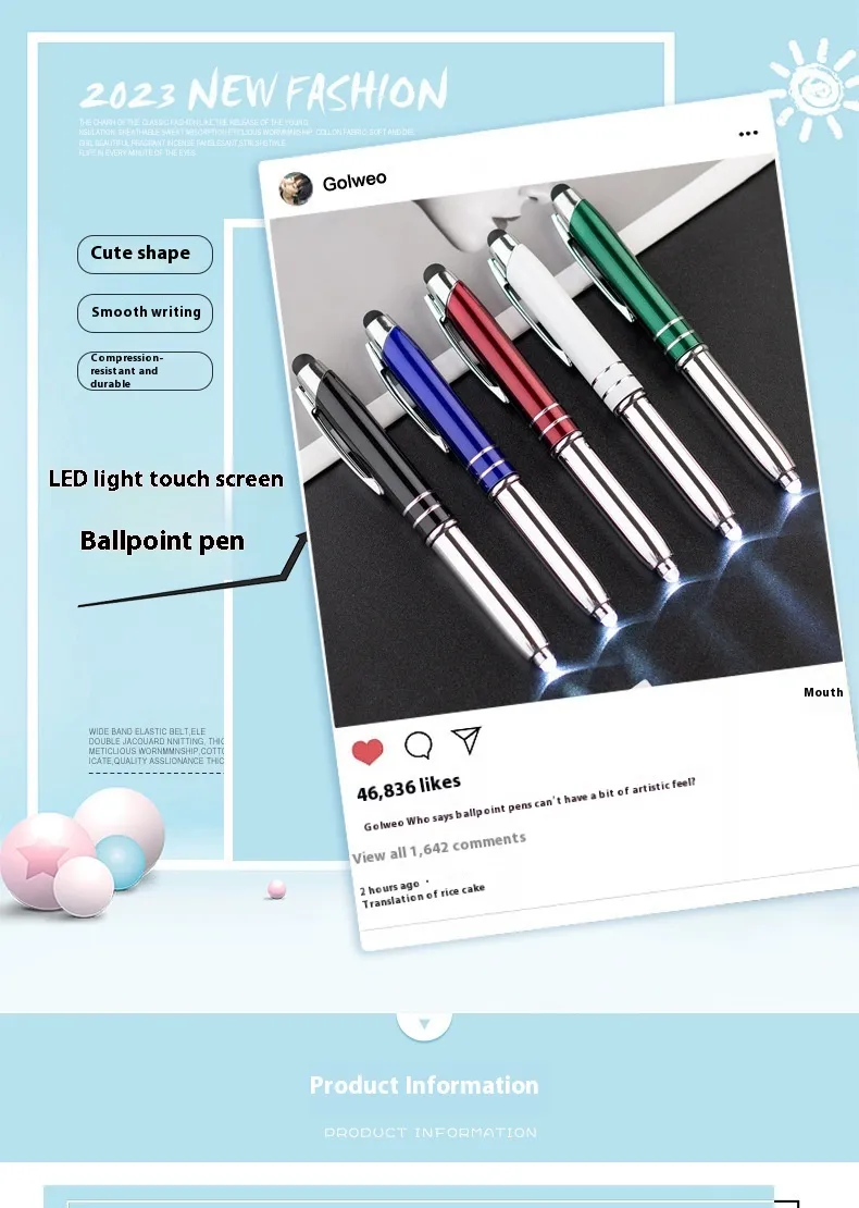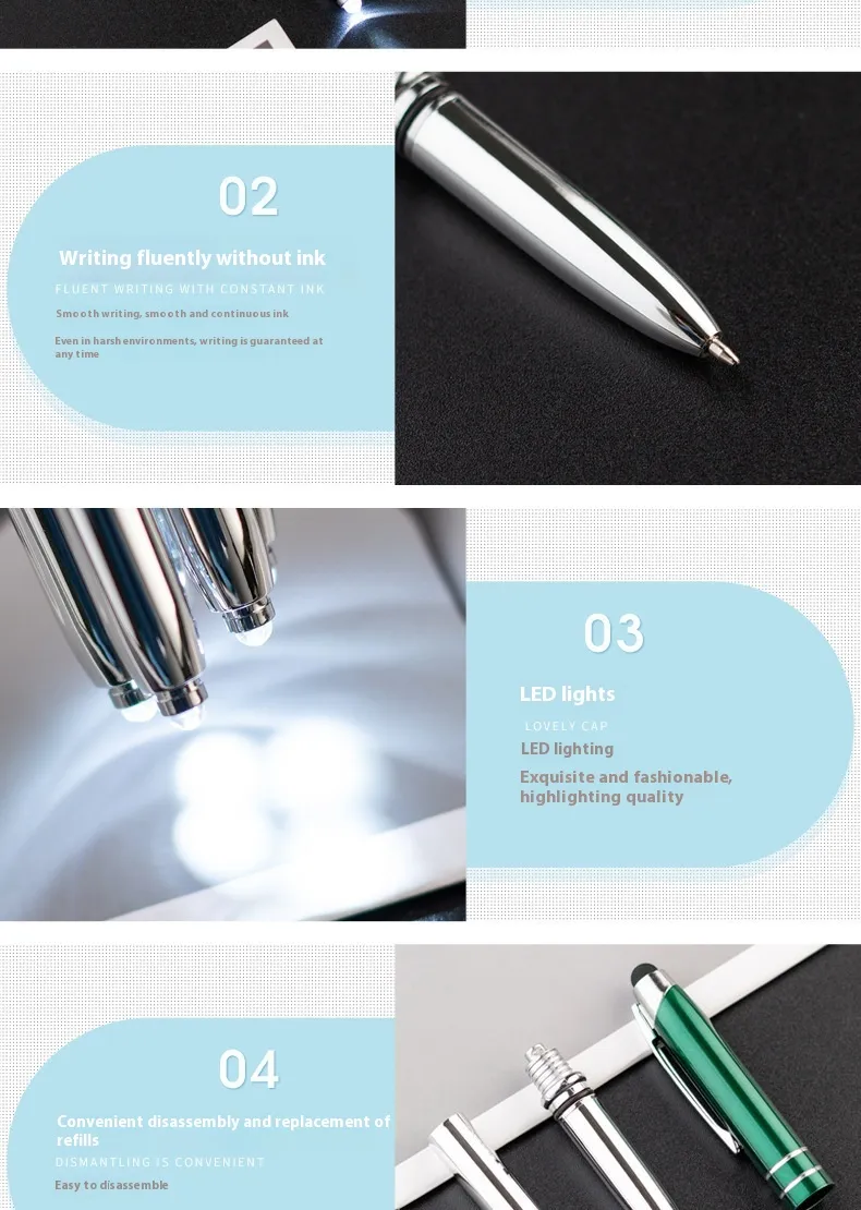Enhance your daily productivity and creativity with the Multifunctional Metal Touch Screen Capacitive Stylus LED Light Office Ballpoint Pen today!