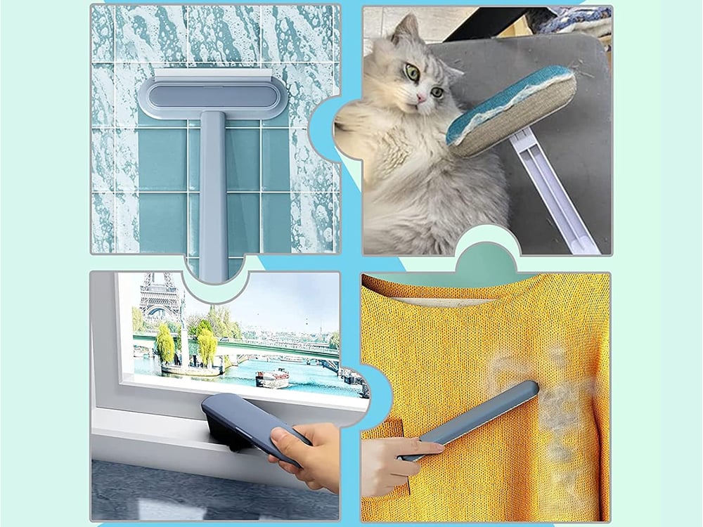 Ultimate Pet Hair Remover Tool This tool excels in removing pet hair from fabrics without leaving behind sticky residues. Unlike traditional lint rollers that require frequent refills, the Multifunctional Pet Hair Remover features a double-sided brush design that lifts and traps hair, dust, and lint from any surface. It's perfect for use on clothing, upholstery, and even car interiors.