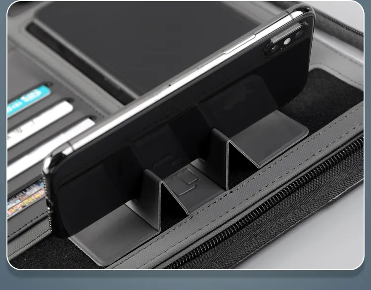 Designed with premium materials, this folder serves as a business manager bag, file folder, and notebook holder all in one. It features multiple compartments to store your documents, cards, pens, and notes, as well as a built-in wireless power charger that ensures your smartphone and other compatible devices are always powered up, no matter where you are.