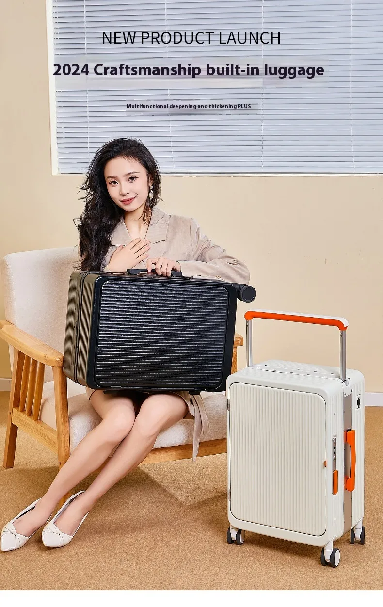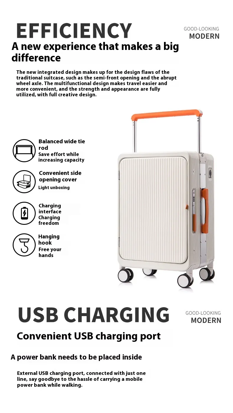 Multifunctional USB Charging Trolley Case Front Fastening Wide Trolley Universal Wheel 20-inch Boarding