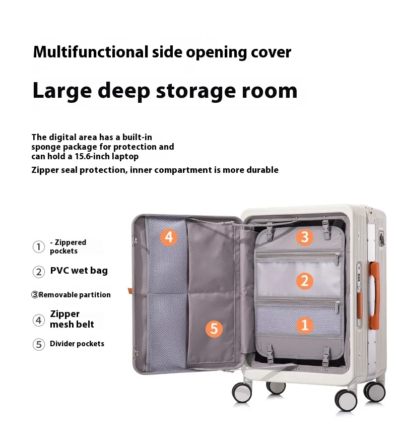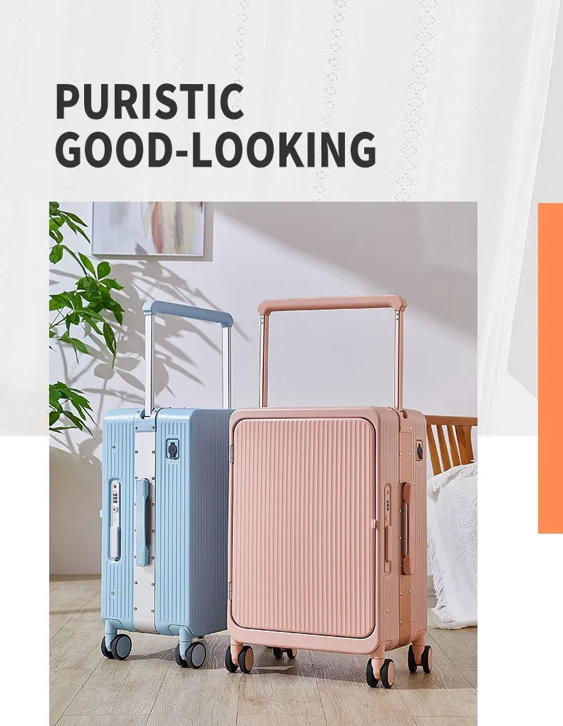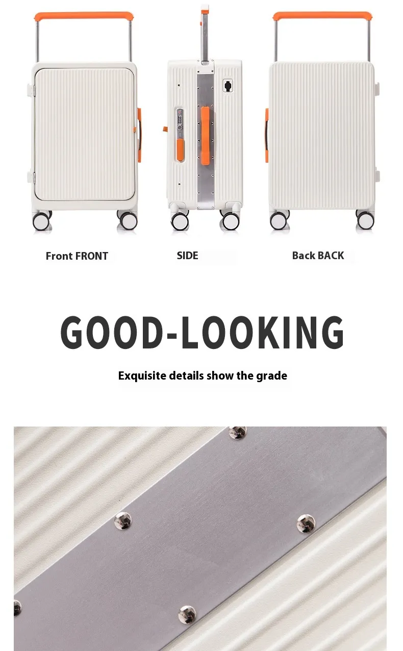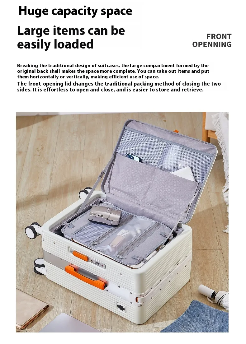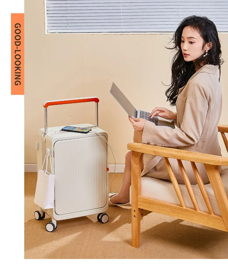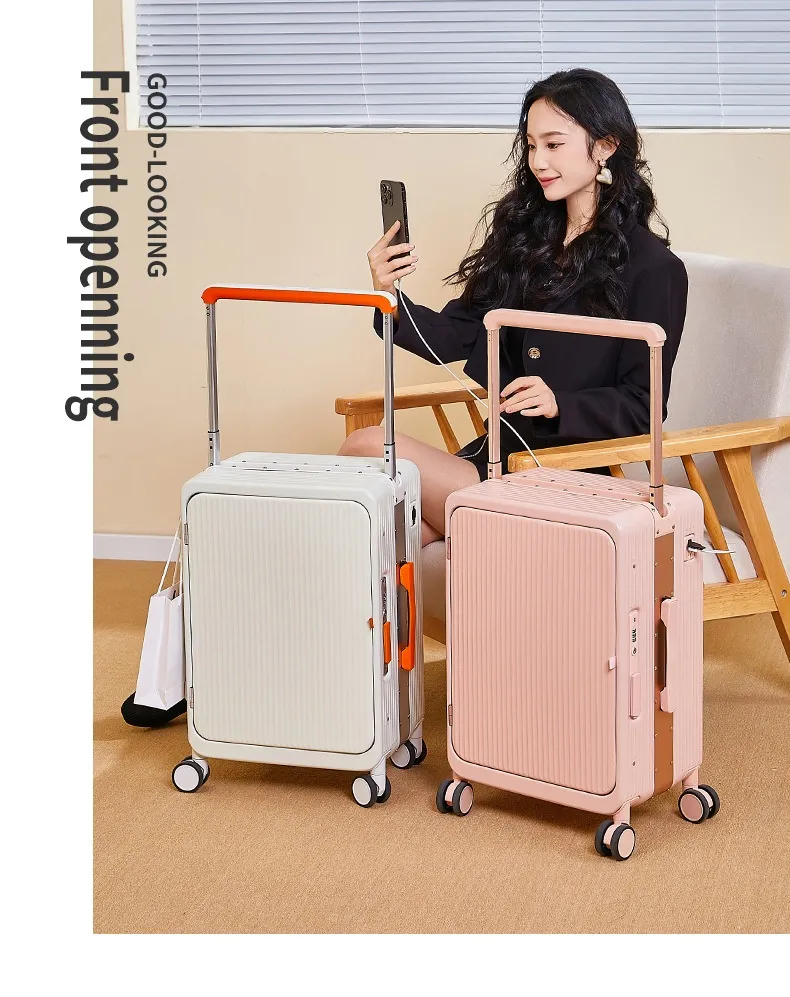 Multifunctional USB Charging Trolley Case – 20-Inch Boarding Trolley with Universal Wheels and Front Fastening