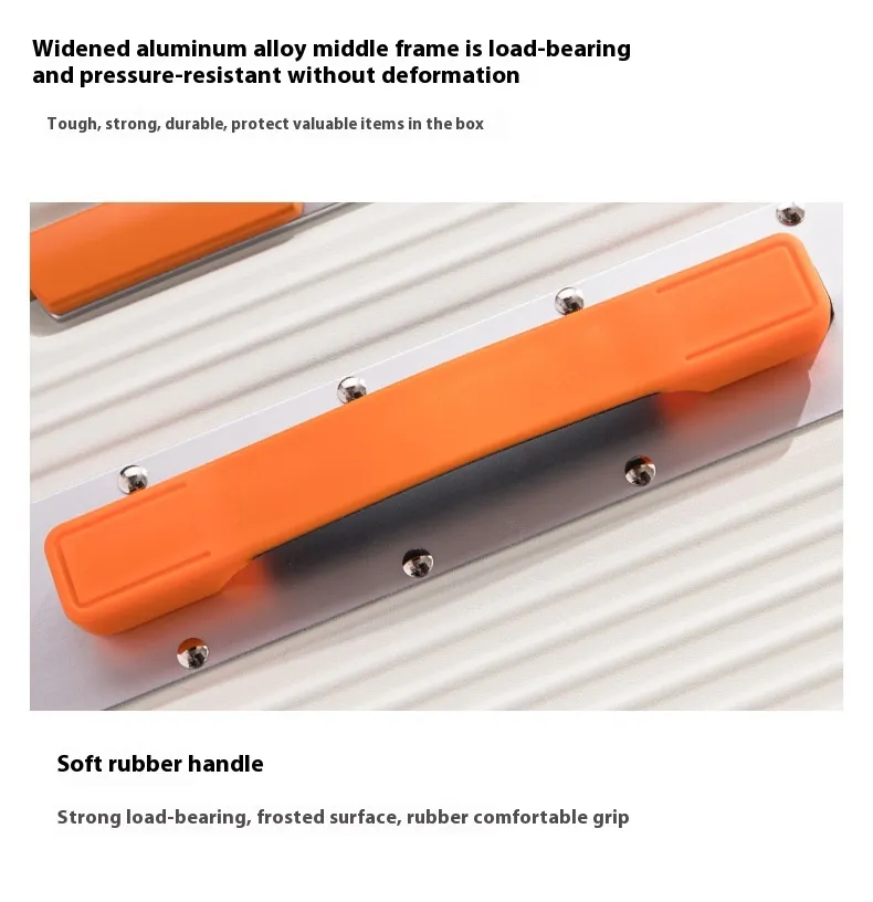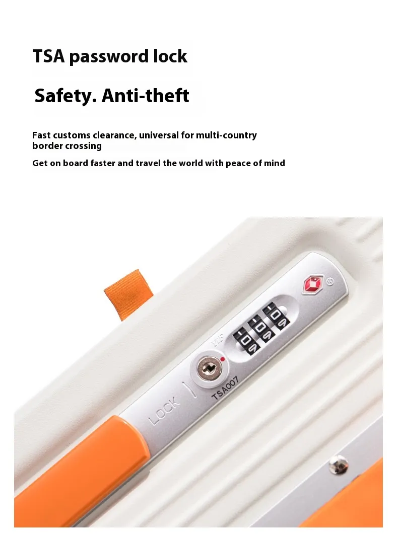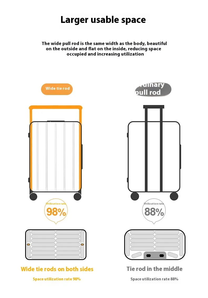 The wide trolley universal wheels are designed for smooth and quiet movement across a variety of surfaces. Whether you're navigating crowded airports, rolling across uneven terrain, or moving through hotel lobbies, these high-quality wheels ensure your trolley case glides effortlessly in all directions. The 360-degree swivel wheels allow for easy maneuverability, even in tight spaces.